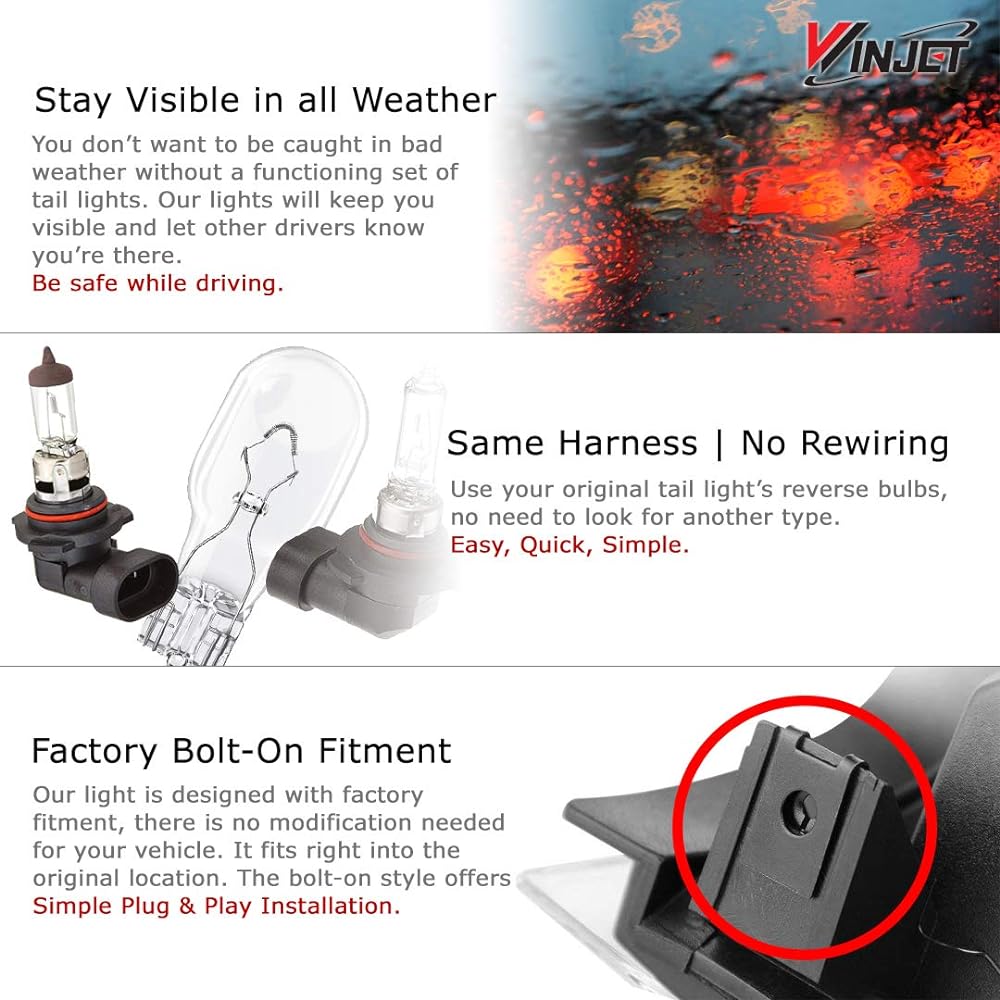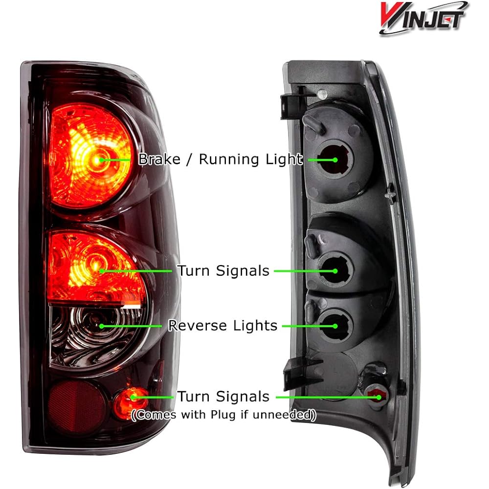 Winjet Tail Light 1999-2006 Chevrolet Silverado & 1999-2003 GMC Sierra | Gloss Black/Clear LED Driver Light Lamp Replacement | 2001 2002 2005 2005 2005