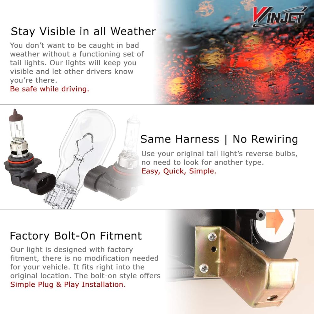 この商品について VEHICLE FITMENT】- Winjet tail lights assembly is Fit for 1986-1994 Nissan Hardbody D21 SE ; 1986-1989,1994 Nissan Hardbody D21 XE ; 1995-1997 Nissan Pickup SE; 1995-1997 Nissan Pickup XE . Only fits w/Dual Rear Wheels (3 Sockets) ; Don't fits w/o Dual Rear Wheels (4 Sockets). 【PLUG & PLAY】- Quick and Easy Installation, No Modifications, Direct Replaces your stock ones. Just easily plug your OE bulbs in the center of tail lamps socket to avoid oblique bulbs melting the housing (NOTE: bulbs not included) 【HIGH QUALITY】- The 3-layer coating lens has excellent UV and impact protection. OEM level and completely sealed housing structure is shake-proof and weather-proof, which will prevent the moisture and dust from entering the lights. So the tail lamp is durable to deal with various road conditions and harsh weather. Moreover, aluminum heat sink and circuit protection driver design will effectively ensure the normal work of the lights.