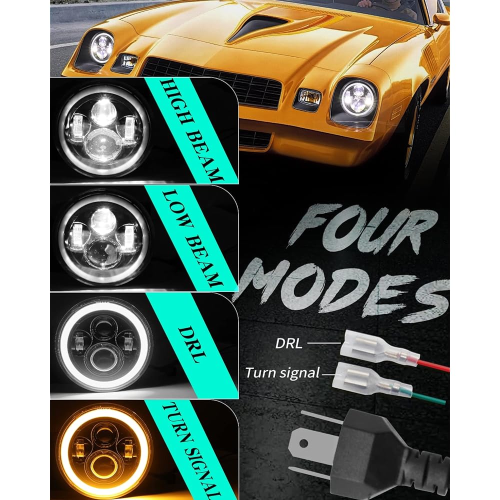 ZIMABLUE 7 inch LED headlight round 2 projectors 7 inch halo LED headlights H6024 DOT approval HI/LO BEAM DRL Amber Winker Galangler JK TJ CJ compatible Chevrolet and Miata
