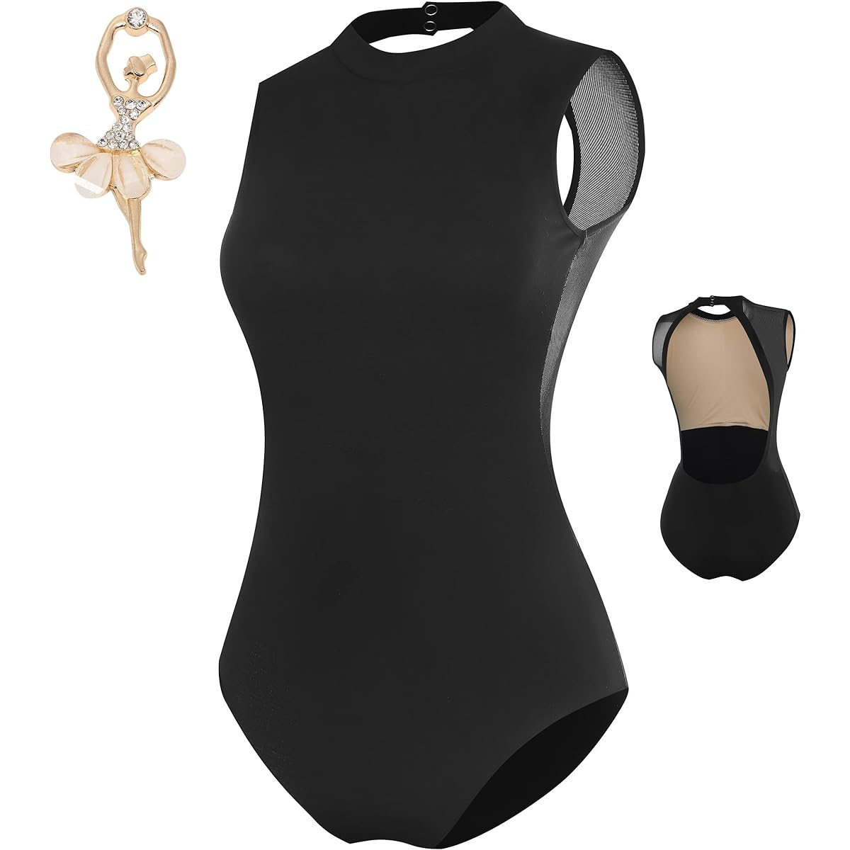 [Aigoda] Ballet Leotard for Adults with Chest Pad Black 5 Sizes Large Size Cotton Women's Rhythmic Gymnastics Mesh