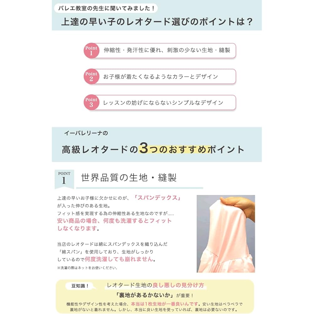 A classic children's ballet leotard that is popular and has been on sale for a long time! (Made in Korea) We have cleared the three important points when choosing children's leotards (1) Stretchy, sweat-absorbent, non-irritating fabric and sewing (2) Colors and designs that children will want to wear ( 3) Simple design that does not interfere with lessons Model: Tank, Colors: pink, light blue, white, purple, black, Material: Made of cotton spun (90% cotton, 10% spantex), has good elasticity and is suitable for children 0120-398-083 / info@eballerina.com