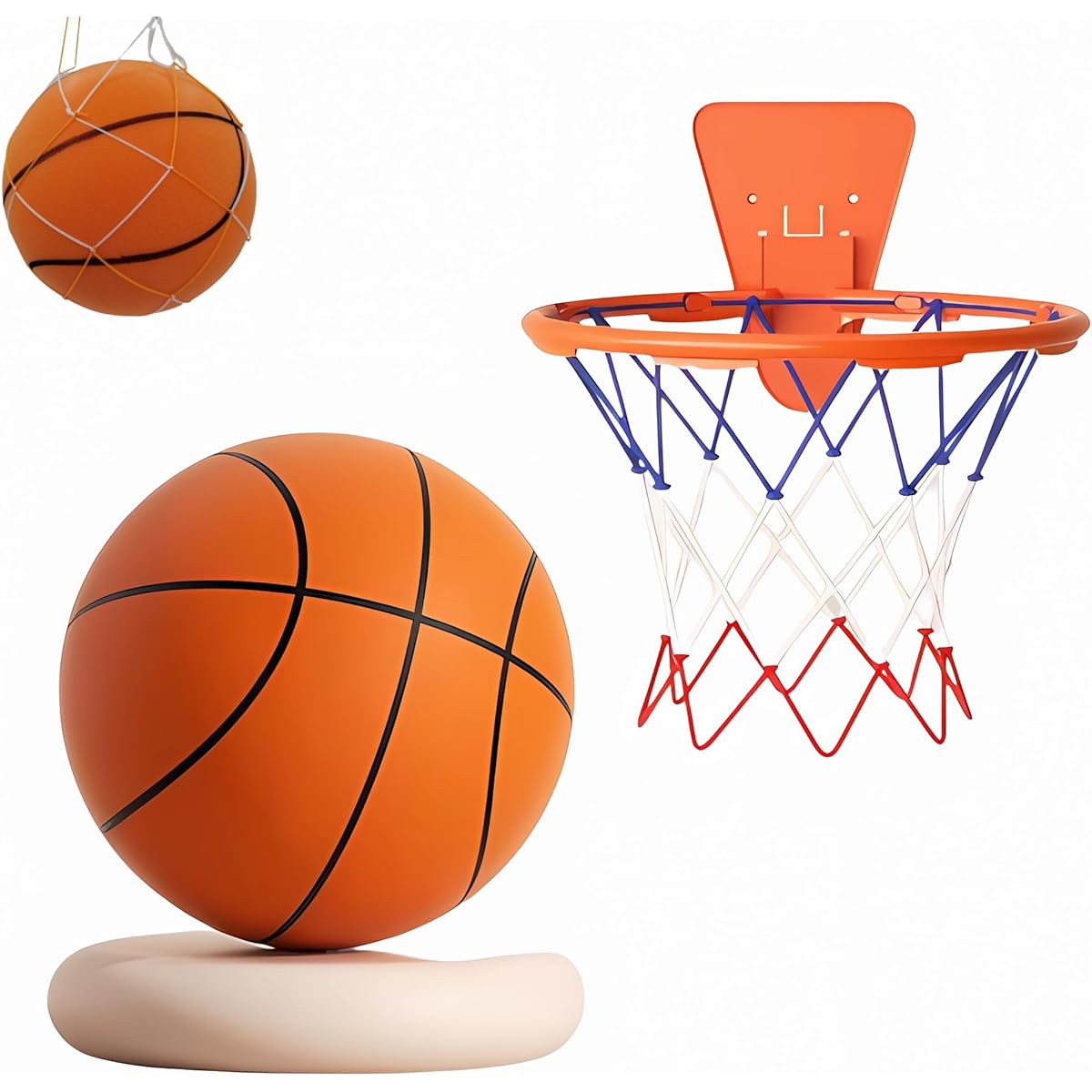 [Safety Material] The basketball adopts polyurethane integral injection molding, which is safe, non-toxic, and has no odor, no need to inject air, and avoids the risk of air leakage and explosion. It also won't disturb your neighbors or neighbors. [No fear of collision] The fabric of the silent ball is lightweight, and it is a 1:1 reproduction of a rubber basketball, so when playing indoors, there is no need to worry about damaging walls or floors, and even if the ball hits someone, you will not feel any pain. Three sizes of basketball can meet different growth stages of children. [Suitable for various floors] The sphere is a solid ball, with strong wear resistance, and can be easily hit, kicked, thrown, hit, pinched, etc. on cement ground, wooden floor, plastic floor, etc. is not deformed. 【Basket frame without holes】The basketball frame is made of ABS and nylon net, with a diameter of 30 CM, suitable for various types of basketball. Hole-free design allows you to adjust the height of the basketball frame according to your child's height.