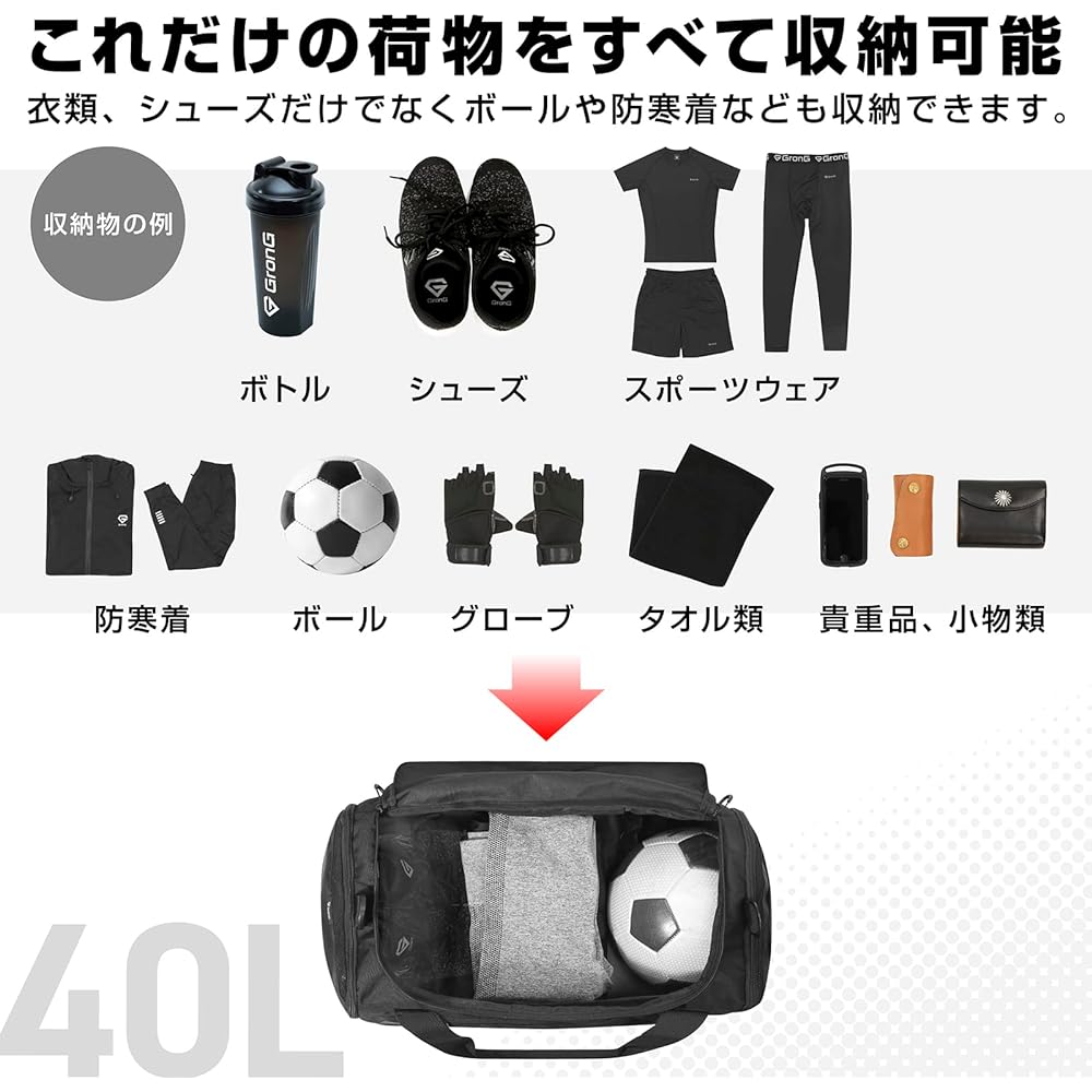 A "sports bag" that can store shoes, clothes, etc. The capacity is large at approximately 40L, and can also store soccer balls and basketballs. It can be used in a variety of sports situations, and is also suitable for storing bulky outerwear.