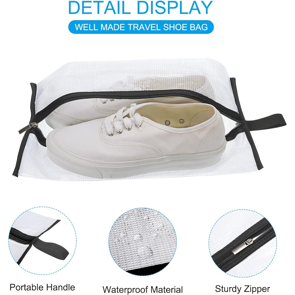 PATIKIL Waterproof Shoe Bag Shoe Pouch Shoe Storage Bag for Travel 4 Pieces Foldable Transparent Suitable for Men and Women Black
