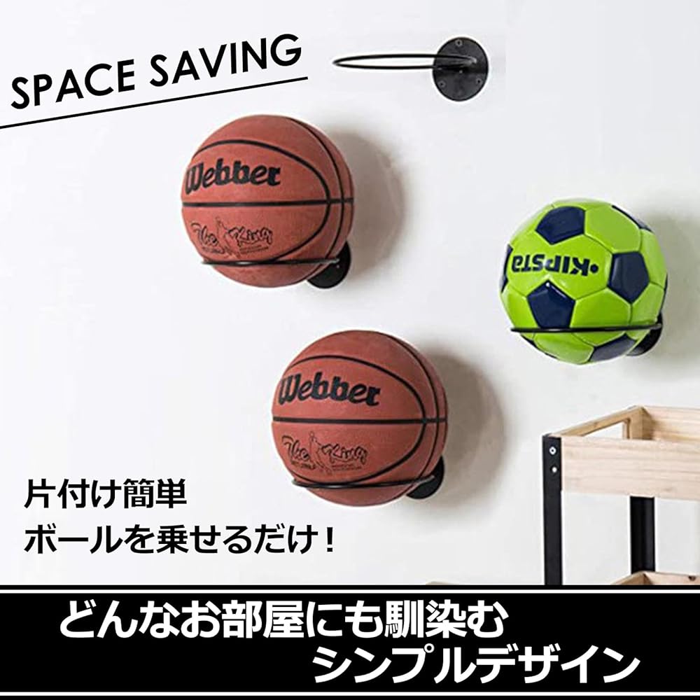 The ball holder is a convenient item that allows you to store your favorite soccer, basketball, rugby, or volleyball on the wall. Display balls in a cool way like a sports store. Easy DIY for walls and shelves as a focal point of your interior, large capacity set of 3 and 5 pieces. Just fix the wall-mounted ball rack to the wall or shelf using the included screws. The rack is made of iron and securely holds balls with a diameter of 13 cm or more, allowing them to be stored floating. The main body is fixed with 3 screws for excellent stability. Great for making effective use of dead space. Ball storage is a display tool that brings out the charm of your precious collectible balls. Cool wall hanging with three-dimensional storage. It is also convenient to be able to fix it at any location and height you like. You can also line up sneakers and hats together. The ball wall rack neatly stores rolling balls. Easy to install in entryways, children's rooms, and empty spaces to suit your needs, such as cleaning up children, club activities, clubs, and collection displays. Improve your motivation to practice with attractive storage. Ball holder set (3 pieces, 5 pieces), diameter 18.5 x depth 23.5 x height 6.5 cm, black, iron, 9 or 15 screws [Recommended age] 14 years and older *Check the strength of the installation surface before installing. please. *Colors may appear slightly different depending on your monitor environment.