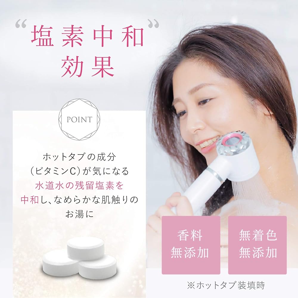 [Shower head for hot tubs] Just set 1 hot tub in a crystal ion shower and use it to create a beauty salon-like bicarbonate shower at home. [Head spa for a healthy bath at home] Lifts dirt and unnecessary dead skin cells and removes minerals that cause dirt and odors without using shampoo or body soap. [Chlorine neutralization effect] The hot tub ingredient (vitamin C) neutralizes the residual chlorine in tap water, making the water smooth to the touch. [Hot Tub Duration] After setting up the hot tub, you can instantly enjoy a bicarbonate shower bath, and the power that slowly melts will last for 8 minutes. It was developed so that even busy people can easily enjoy hot tub bicarbonate water. [Product specifications] Contents: Main unit, 3 adapters, instruction manual (warranty included) / Manufacturer: Made in Japan / Color: Pink, Blue / Connection screw size: G1/2 inch / Water pressure: 0.05-0.40MPa (purified water) pressure)