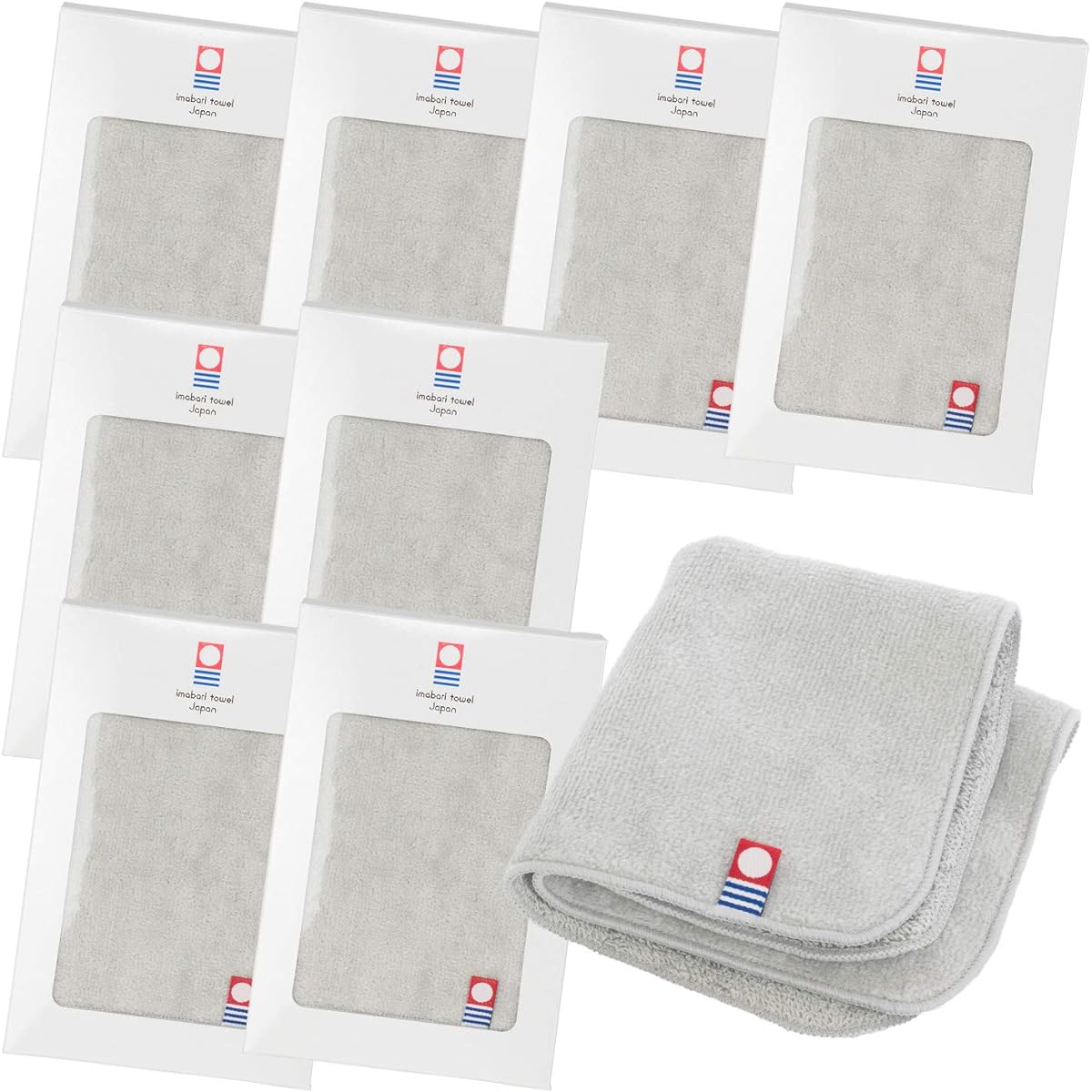 Bloom Imabari Towel Certified Towel Handkerchief Small Gift Set of 8 Vigne Handkerchief Gift Box Hand Towel 20 x 20cm Individually Wrapped Made in Japan 100% Cotton (Gray)