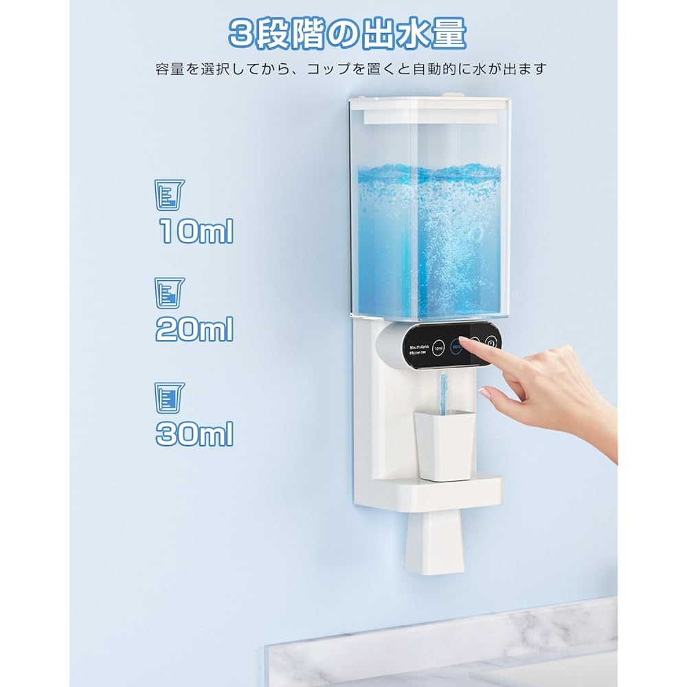 ISOJI Liquid Dispenser Mouthwash Dispenser Automatic Sensitive Wall Mounted 3 Levels Adjustable [10ml/20ml/30ml] Bad Breath Freshener Dispenser 700ml Large Capacity Mouthwash Dispenser with Magnetic Suction Cup Touch Button Dispenser White