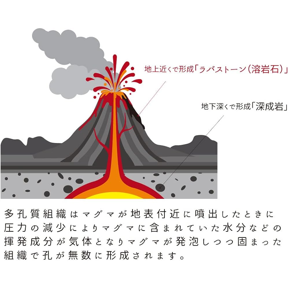 Easily remodel your bathroom A bath mat made from lava stone (volcanic rock), a natural material with high water absorption. From the moment you step on the mat, it absorbs moisture comfortably. Lava rock has a highly porous structure because water evaporates when magma cools rapidly during an eruption. It has a humidity control ability that absorbs moisture when the humidity is high and releases it when it is dry, allowing the surface to always remain dry.
