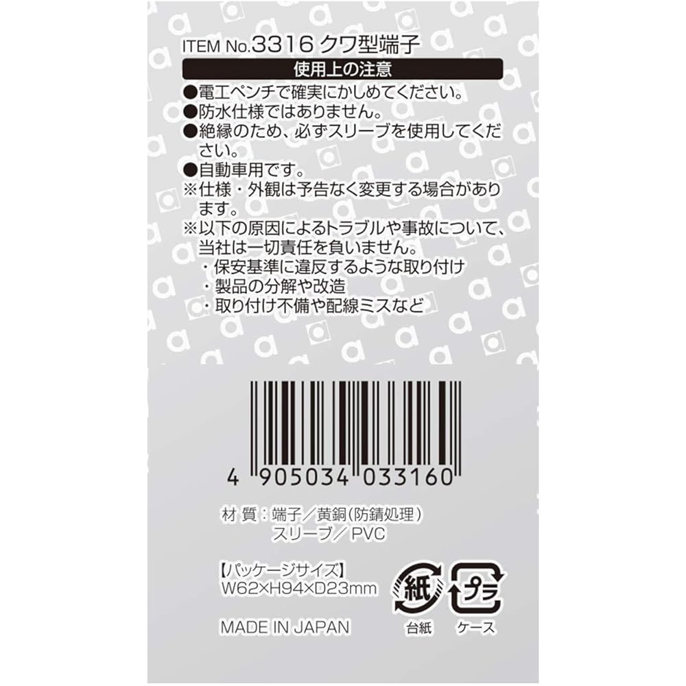 ![Amon Hoe-shaped terminal Hole diameter φ6 AV(S)0.5~2sq 8 pieces 3316 & Wiring tube 5φ 2m 1115 [Set purchase]](http://megashopjapan.com/cdn/shop/products/71ocQ8JIY_L._AC_US1000.jpg?v=1708890705&width=1445)