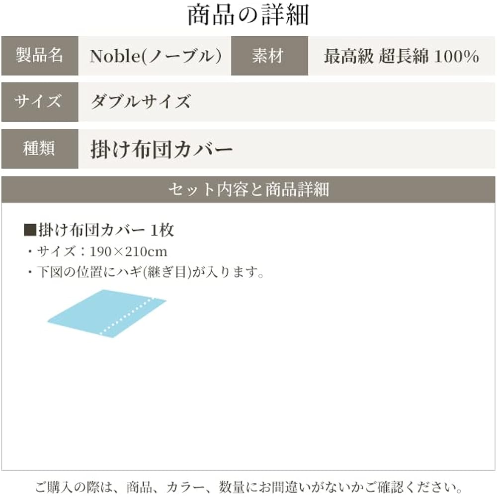 [Product name] Noble [Size] Duvet cover double size 190 x 210 cm [Specifications] Stitching all around, full side zipper, 8 snap buttons for securing the duvet *Hagi (cloth seams) are included for sizes larger than semi-double Masu. [Material] 100% cotton [Country of manufacture] Japan (Produced in our own attached factory.) High-quality covering 80 satin series made from the finest "ultra-long cotton". This premium cotton has a soft and supple texture like silk, a high-quality moist feel, a beautiful natural luster, and excellent durability, moisture absorption, and resistance to pilling. We use ultra-long staple cotton with an average length of over 35 mm, which is extra long among picked natural cotton, and the satin fabric is woven with 80 fine threads at a high density, giving it suppleness, smoothness, and an elegant luster. It is dust mite resistant, lightweight, and has a smooth texture that will impress you. Make your bedroom look like a luxury hotel. Made in Japan, making it durable and of high quality. Perfect for duvets and duvets, available in a wide variety of colors. Can be used in all seasons: spring, summer, autumn, and winter. Dark colors may fade when washed. please note. - When washing, use a laundry net and use a detergent that does not contain optical brighteners to maintain the texture and allow you to use it for a long time.・Also, please do not leave it wet for a long time after washing. The bedding and duvet covers that we manufacture and sell are made in Japan, with a focus on high quality, and are produced domestically at our own factory. We also offer products recommended by the Atopic Dermatology Association and Oeko-Tex certified products that are gentle on the skin, so even those with sensitive skin can enjoy a safe, secure and healthy night's sleep. We also carry many materials with excellent quick-drying and breathability, and natural colors that are perfect for Scandinavian interiors. We offer a wide range of sizes, including single and double sizes, as well as semi-double sizes, which have become popular in recent years, queen sizes, and king sizes. We also offer 3-piece and 4-piece sets that are recommended for starting a new life. In addition to our covering lineup, which includes duvet covers, futon covers (Japanese style), fitted sheets (Western style), fitted sheets, flat sheets, and pillow cases, we also offer shearling rugs, shearling slippers, and warm microfiber. We also carry duvet covers. Perfect as a gift for Father's Day, Mother's Day, Respect for the Aged Day, Christmas, housewarming gifts, wedding gifts, etc.
