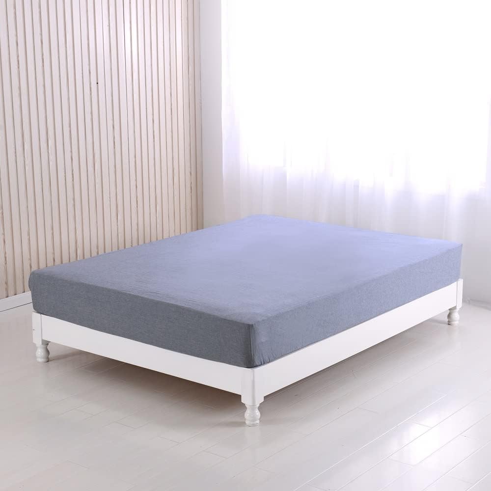 Fitted Sheet Wide King 200x200x30cm Organic Cotton 100% Washed Cotton Bed Sheet BOX Sheet Mite Resistant Indigo Blue