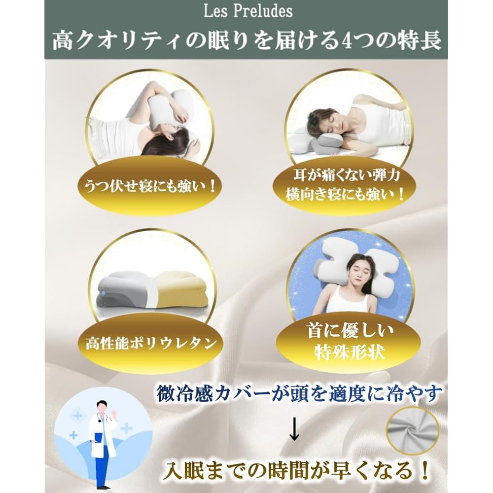 Les Preludes Side Sleeping Pillow, No Neck Pain, Memory Foam, Cool Feeling, Cover Washable, Pillow Head, Stomach Sleeping Pillow, Low Snoring, Memory Foam Pillow, Present, White x Gray New Life