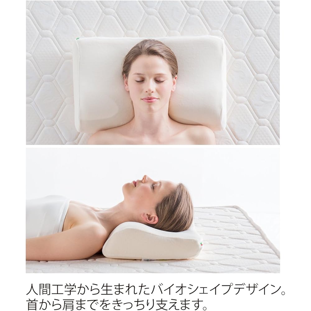 Product Features: Maniflex's unique ergonomic design pillow ``BioShape Pillow'' is based on deep medical knowledge of the human skeletal structure. It not only supports your head, but also supports your head, neck, and shoulders, supporting your cervical vertebrae. Maintains a natural S-curve. Comes with a special pillow case that is soft to the touch and has excellent moisture absorption. The cover can be washed. The Eriocell MF used in the core material fits seamlessly from your head to your shoulders, exhibiting optimal elasticity and resilience for the pillow, and evenly distributing the weight of your head. Supports your sleeping posture in a relaxed state without using your neck (cervical vertebrae) muscles. The shape has been designed with more emphasis on cervical spine support. Eriocell has an open-cell molecular structure with excellent breathability, so it doesn't get stuffy, and its hardness doesn't change due to temperature, so you can use it comfortably all year round. Certified by the German industrial standard LGA-GERMANY, we offer a 3-year long-term warranty against core material collapse and visible deformation due to pillow fatigue. When cleaning your pillow, let it wick away moisture by leaning it upright. Since it is resistant to heat, a futon dryer is also recommended to wick away moisture. Please avoid direct sunlight as the core material may discolor due to ultraviolet rays. Handling instructions: Please use the included pillow cover to prevent damage and stains. - Periodically dry the entire pillow by drying it in the shade in a well-ventilated place or using a futon dryer.・The core material of the pillow cannot be washed, but the included pillow cover can be washed. (Please wash according to the quality label) Precautions for use: - This product contains a lot of air. As it is easily flammable, please keep it away from flames such as stoves and cigarettes.・Please discard the packaging materials immediately. If you play with the outer cover on, there is a risk of suffocation.・The core material changes color over time. When exposed to light or air, it will change color over time, but there is no problem with quality or performance. Please avoid drying the product in the sun as direct sunlight may cause extreme discoloration of the core material or lead to deterioration of the core material.・Please be careful when handling the core material. Please be careful not to pull the cover forcibly when removing it, as this may cause damage. - If the pillow's moisture cannot escape and dry, the feel of the core material may become soft and the original comfort of sleeping may be impaired. If the pillow gets wet, use a hair dryer to dry it so that no moisture remains.・Please open the package as soon as possible after receiving the product. We may not be able to respond to complaints about initial defects that occur after some time has passed after purchase.・The product warranty is against ``deformation'' due to ``settling'' of the core material during normal use as bedding. We do not guarantee sleeping comfort. Brand introduction: ``Maniflex'' was born in Florence, Italy in 1962, and has a history of over 50 years since its founding, with its world-patented vacuum roll pack technology being used by more than 35 million people in 90 countries around the world. is a global comprehensive brand of bedding, represented by high-resilience mattresses.