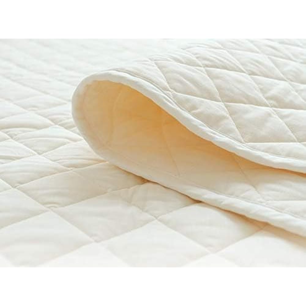 : Washable and clean, Pasima is a bedding that can be used all year round, both in summer and winter, with excellent moisture absorption, water absorption, and heat retention. Absorbent cotton is used as the batting, and both sides are protected with 100% cotton gauze and finished with durable quilting. Pasima is made of skin-friendly fabric and can be used directly on top of a mattress or futon without a cover. Size: Queen Dimensions: 176 x 210cm Color: Kinari Side fabric: 100% cotton (gauze) / Outer and lower layers of stuffing: 85% cotton (absorbent cotton), 15% composite fiber (polyester) / Middle layer of stuffing: 60% cotton ( absorbent cotton), 40% polyester