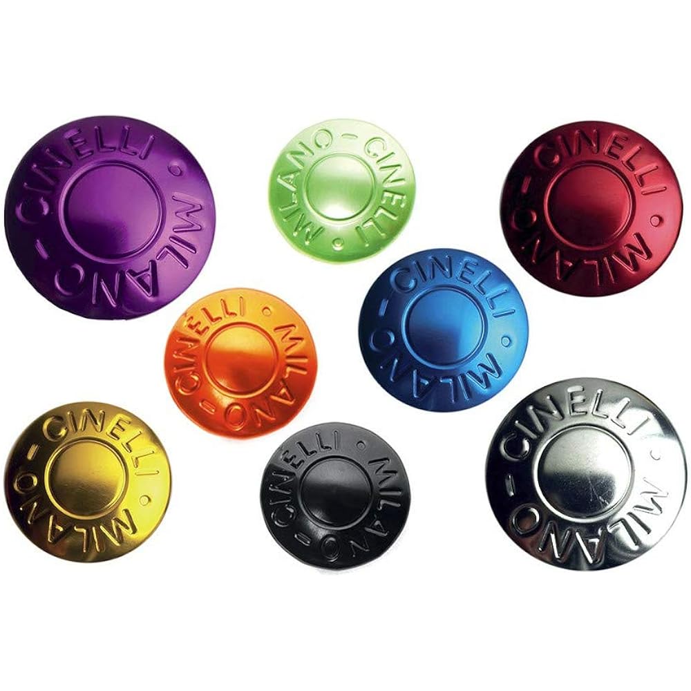 The classic "Cinelli Milano" bar end cap is back. Eight color variations: silver, blue, gold, red, purple, green, orange, and black. Anodized resin bar end cap. You can enjoy coordinating with bar tape, bikes, and clothing.