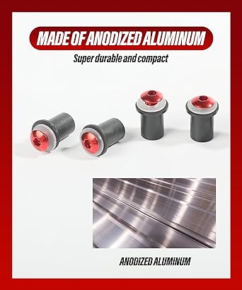[Package contents] 10 motorcycle windshield bolts and screws set, 1 set of M5 wrench [Durable material] Motorcycle windshield bolts are made of aluminum alloy material, high strength, not easy to bend, and durable. , long life. [Bolt Surface Treatment] The surface of the windshield bolt is anodized, making it more beautiful, anti-rust, anti-corrosion and durable. [Easy to install] Aluminum alloy motorcycle windshield body mounting bolts and nuts are easy to install, just screw the bolts into the installation position and replace directly. [Applicable] Fairing bolts, replaceable windshield, and main fairing components are completed. Bolts are 0.7" long and 0.4" wide. Suitable for motorcycles, sports cars, cross-country bicycles, scooters, etc. Used for modifying, tightening, reinforcing and decorating motorcycle parts. Commonly used to repair motorcycle fairings, parts, body parts, mudguards, bumpers, and some windshields.