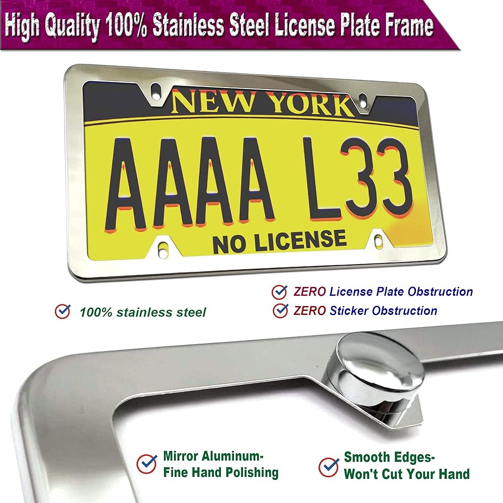 Front License Plate Bracket - Ideal for cars that don't have pre-drilled holes or just have two holes drilled in the front bumper. No need to modify without drilling. The plastic front license plate adapter is ideal for vehicles with contoured bumpers, attaching a front license plate to a trailer, or adding a novelty plate to other vehicles, or as a spacer recessed into the rear license plate area of the vehicle. Ideal as. DURABLE STAINLESS STEEL LICENSE PLATE FRAME - This car tag cover frame is made of high quality SAE 304 stainless steel material, which protects your license plate from rust and won't easily bend or deform. Adaptable to various climates and automatic car washes. Mirror polished surface, no coating, never fade or deteriorate, so your license plate is always cool and new. FOR UNIVERSAL FRONT LICENSE PLATE - The front plate holder adjuster and frame combo is designed to fit all 6 x 12 inch standard/novelty plates. The stainless steel slim frame design won't block the registration sticker on your license plate, so it's road legal and won't get chased by the traffic police. Comes in one set of his for the front bumper or back trunk of your car tag. Available in 3 types of frames: stainless steel, carbon fiber, silicone, choose one to protect your license plate. Easy to install - We offer license plate mounting hardware, including stainless steel license plate screws and chrome screw caps. Easily secure license plates without purchasing additional hardware. M6 x 20mm (1/4 x 3/4 inch) long screw bolts secure the plastic bracket to the car bumper, and M6 x 12mm mechanical bolts are used to secure the license plate and frame to the bracket. Chrome license plate screw caps cover the screw heads and align with the chrome frame for a clean look. CORROSION-RESISTANT, RUST-PROOF, SCRATCH-RESISTANT - The mounting bracket is made of heavy-duty black ABS plastic and the heavy-duty frame is made of stainless steel, which is corrosion, rust and weather resistant. Kit includes 8 pack of rattle-proof license plate pads. Stick a spacer pad behind the bracket to keep vibration noise out of the plate and protect your paint. If the screws in our bracket frame kit are not suitable for your model, please feel free to contact us. We will send you replacement screws.