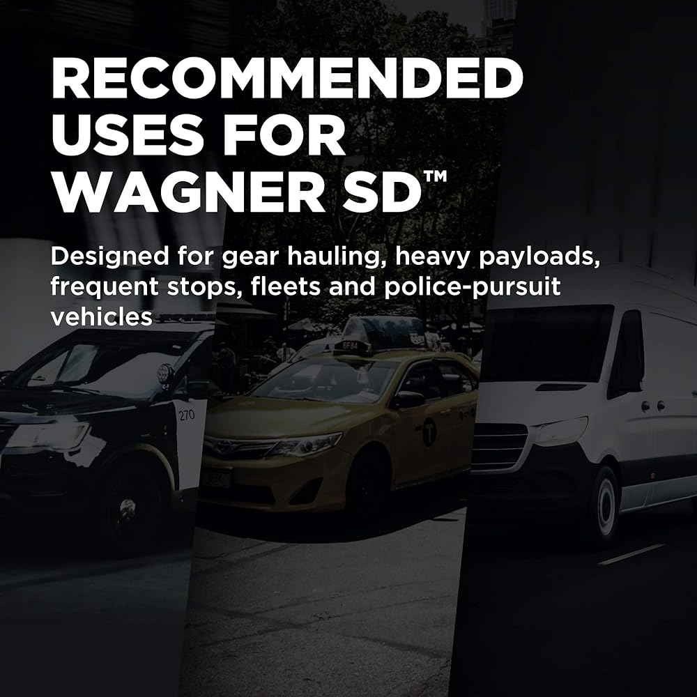 Wagner® SD™ brake pads are specifically designed and tested to provide durable performance for vehicles operated in demanding conditions such as fleets, police pursuits, frequent stops, gear hauling, and heavy loads. I am.