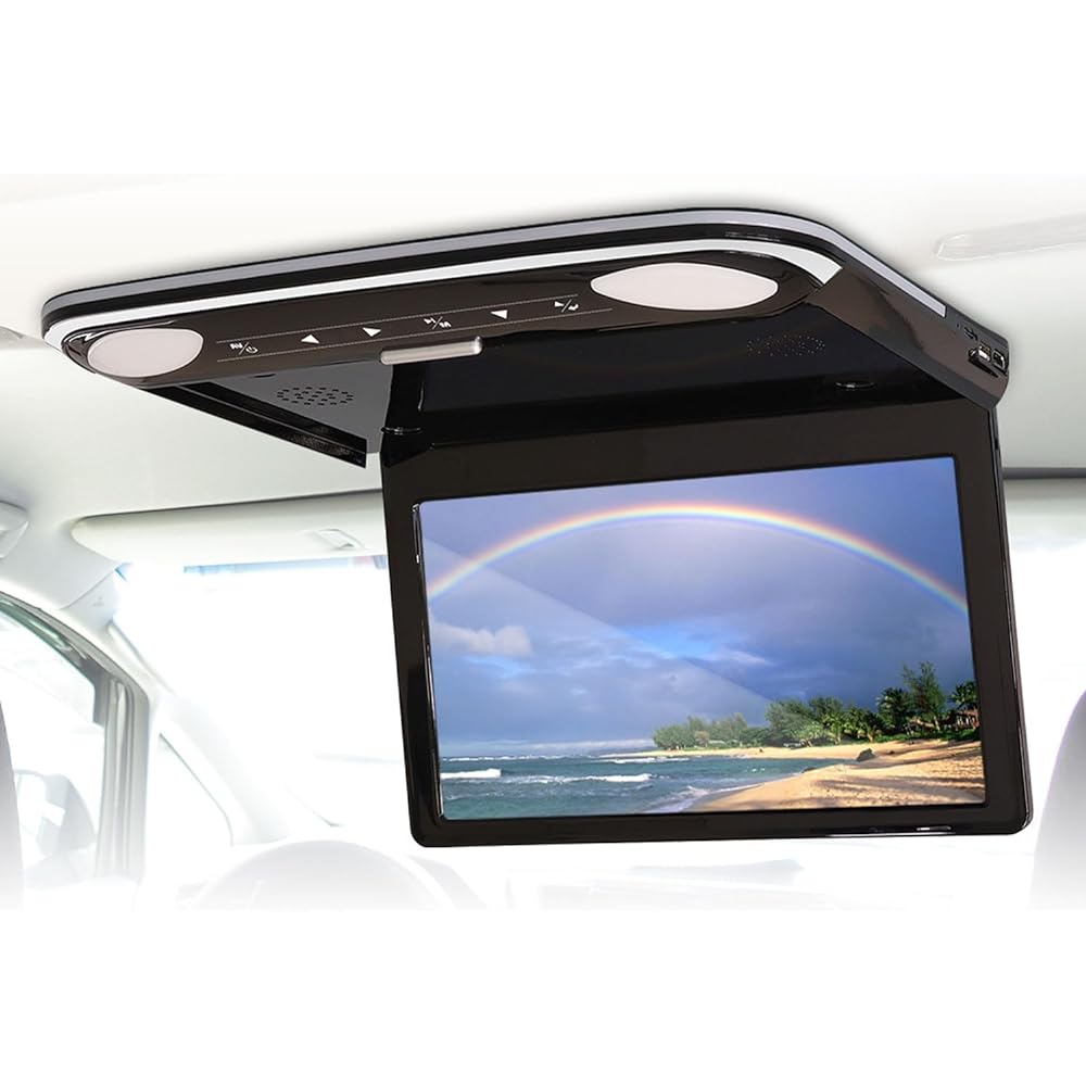 MAXWIN Flip Down Monitor 12.1 Inch 1600 x 900 LCD with Speaker HDMI microSD Smartphone iPhone RCA Room Lamp Ultra Thin Design Compatible with Fire TV General Purpose FLH1212