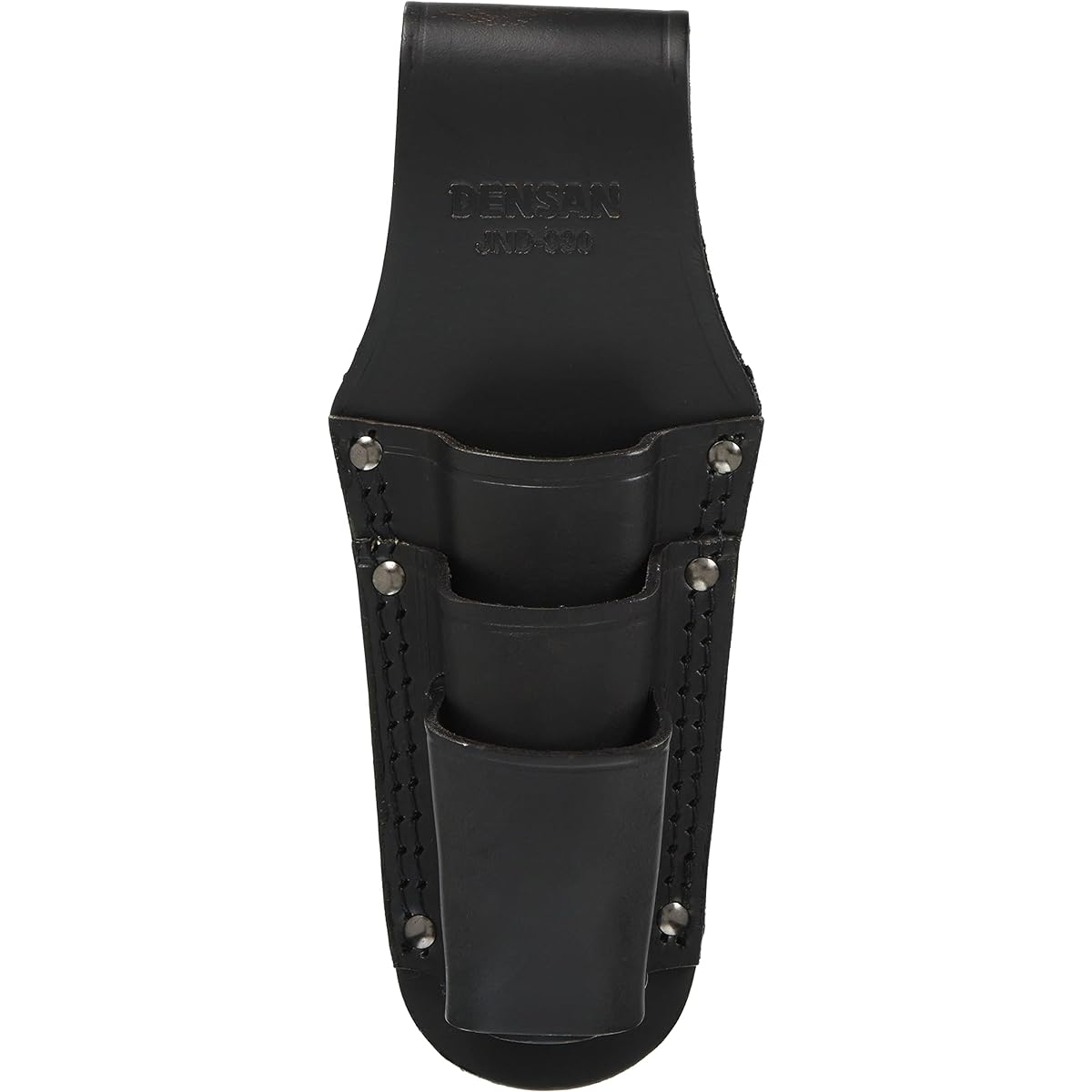Tool holder series made of high-quality black cow tanned leather ●Manufacturing, dyeing, embossing, and sewing are all done by Japanese craftsmen ●High-quality cow tanned outer leather is dyed black ●Thin leather using a single piece of leather - Lighter than glued ones - The entire edge (cut surface of the leather) is coated with a special paint that prevents water and abrasion - 2 pliers + 3 vertical tiers of cutter knives [Storable tools (example)] 1DU -200, JP-200,JK-200, NP-2002NP-175, JK-1753 For cutter knife