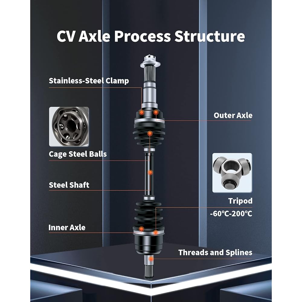 Compatible models - YAMAHA 350 BIG BEAR 4X4 4X4 1998 YAMAHA 350 BIG BEAR 4X4 4X4 1999 YAMAHA 350 BIG BEAR 4X4 4X4 1995-2000 YAMAHA 350 WOLVERVERVER. INE 4X4 YFM350 4X4,2000 YAMAHA 400 BIG BEAR 4X4 YFM400FM/FMC 4X4,2001 YAMAHA 400 BIG BEAR 4X4 YFM400FN/40FHN 4X4,1999 YAMAHA 400 KODIAK 4X4 4X4 OE Part Replacement - Designed to replace OE Part has been Built to meet or exceed OEM standards. Fits and functions just like the OE part. Perfect replacement for OE parts with exact same fit and function at a much lower cost. Shaft - Durable CR-Moly steel shaft manufactured from premium materials provides smooth and stable operation under all driving conditions. Efficiently converts power from the engine to the wheels. Boot - 100% neoprene boot closes the housing, leaving no gaps, no grease leaks, and no sand or water entering the housing parts. Neoprene is also stretchy and can be maintained for a long time. Grease - Assembled with a special grease containing molybdenum disulfide for reliable performance even under high temperature conditions.