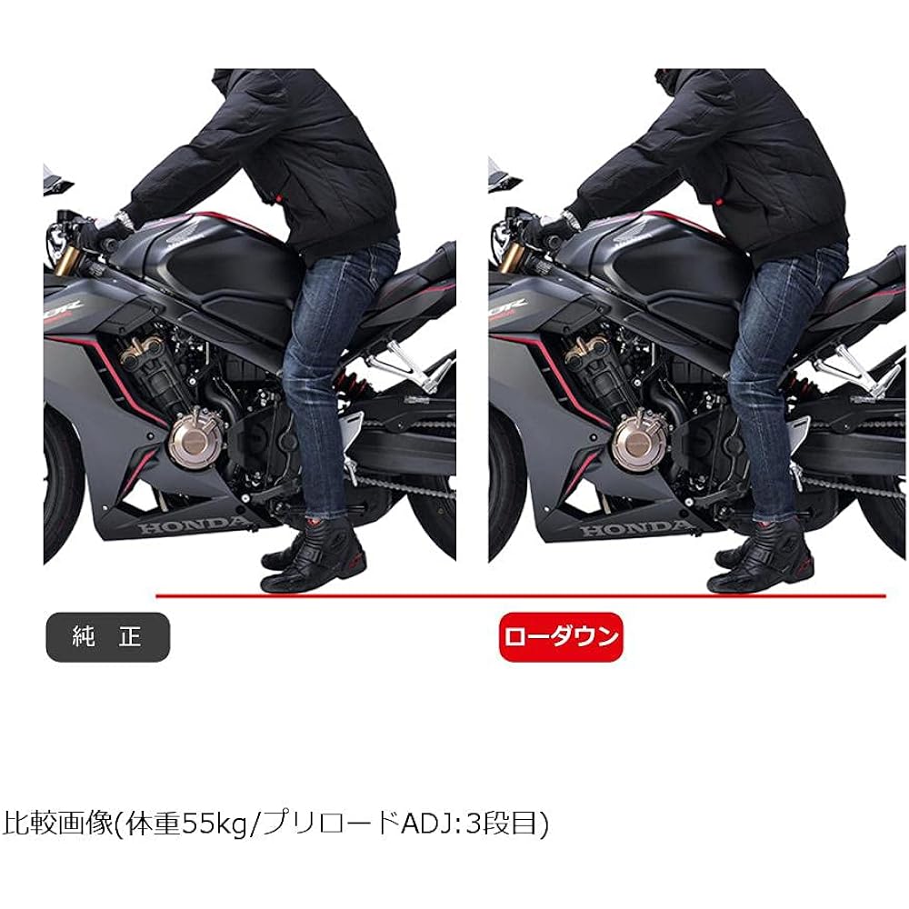 Compatible models: CB650R/CBR650R 19-20 Vehicle height adjustment function [adjustment range]: (varies depending on rider weight and preload position) Down amount approximately 15mm Color: Candy red (powder coating) Specifications: Spring replacement Type: 3-stage unequal pitch spring