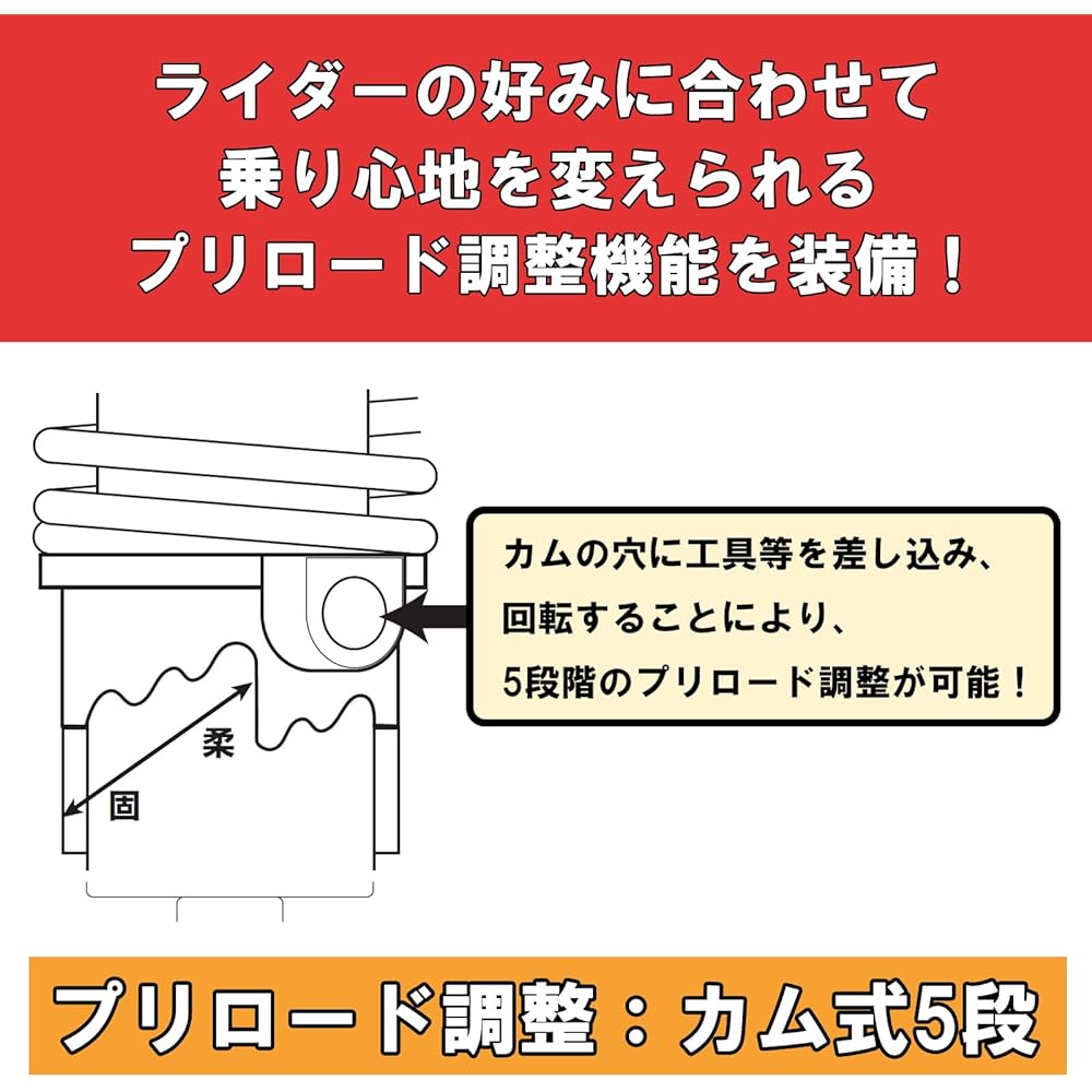 This is a rear shock absorber that uses Kitaco's original oil damper. These tuning parts were developed by making the most of the mini bike know-how that we have cultivated. *Please note that the stiffness of the rear shock will vary depending on the combination with the swing arm. ■Specifications ○Free length: 350mm ○Preload adjustment: Cam type 5 stages ○Oil damper type ○2 pieces 1SET * Older type Cubs cannot be installed because the shock length is different. Also, it may differ from the stock rear shock length. ○ Reference normal rear shock free length CD50/Benry 50 series: 350mm Super Cub 50~90 (C50/AA01/C70/HA02): 325mm Super Cub 50/110 (AA04/JA10): 350mm