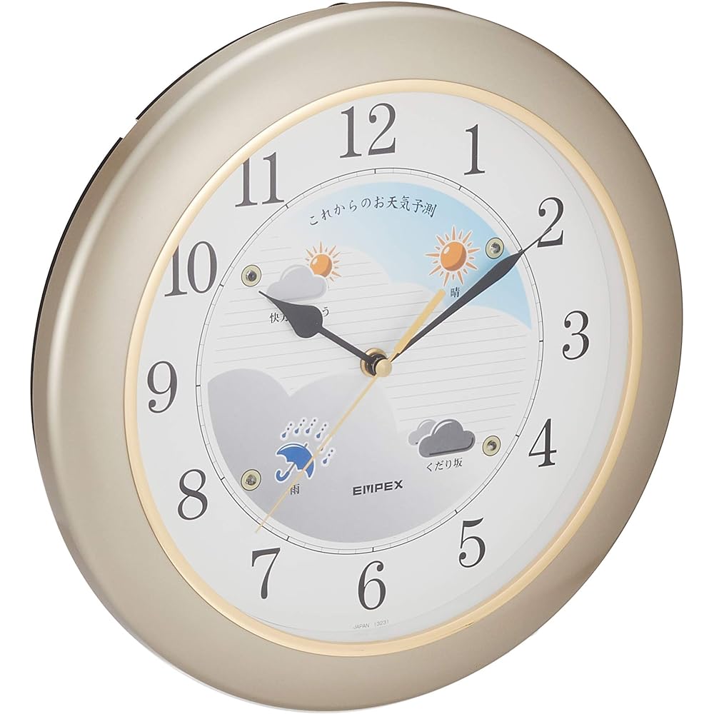 Empex Weather Meter Wall Clock Weather Pal with Weather Forecast Function Made in Japan Champagne Gold BW-5048