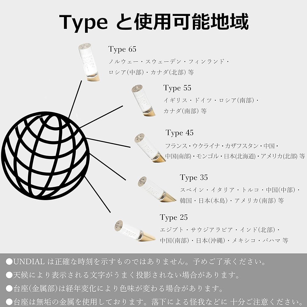 Size: Φ3.5 x maximum width 14 x height 8.5 cm Materials: Brass/acrylic Country of origin: India Type 35 (30-40 degrees north latitude): Japan (main island), Spain, Italy, China (central) ) etc.