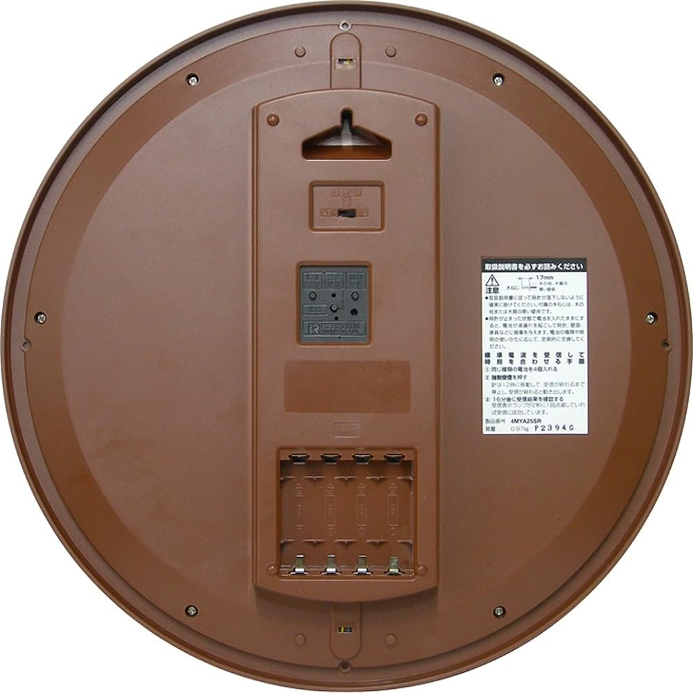 Size: ф33.7x5.4cm Power source: Alkaline AA x 4 pieces (sold separately) Movement: Radio-controlled clock Second hand: Step second hand (with automatic stop function in the dark) Light: Automatic lighting in the dark (auto light function) 2 Built-in dot LED light With radio reception OFF function Materials: Wooden frame/Glass windshield