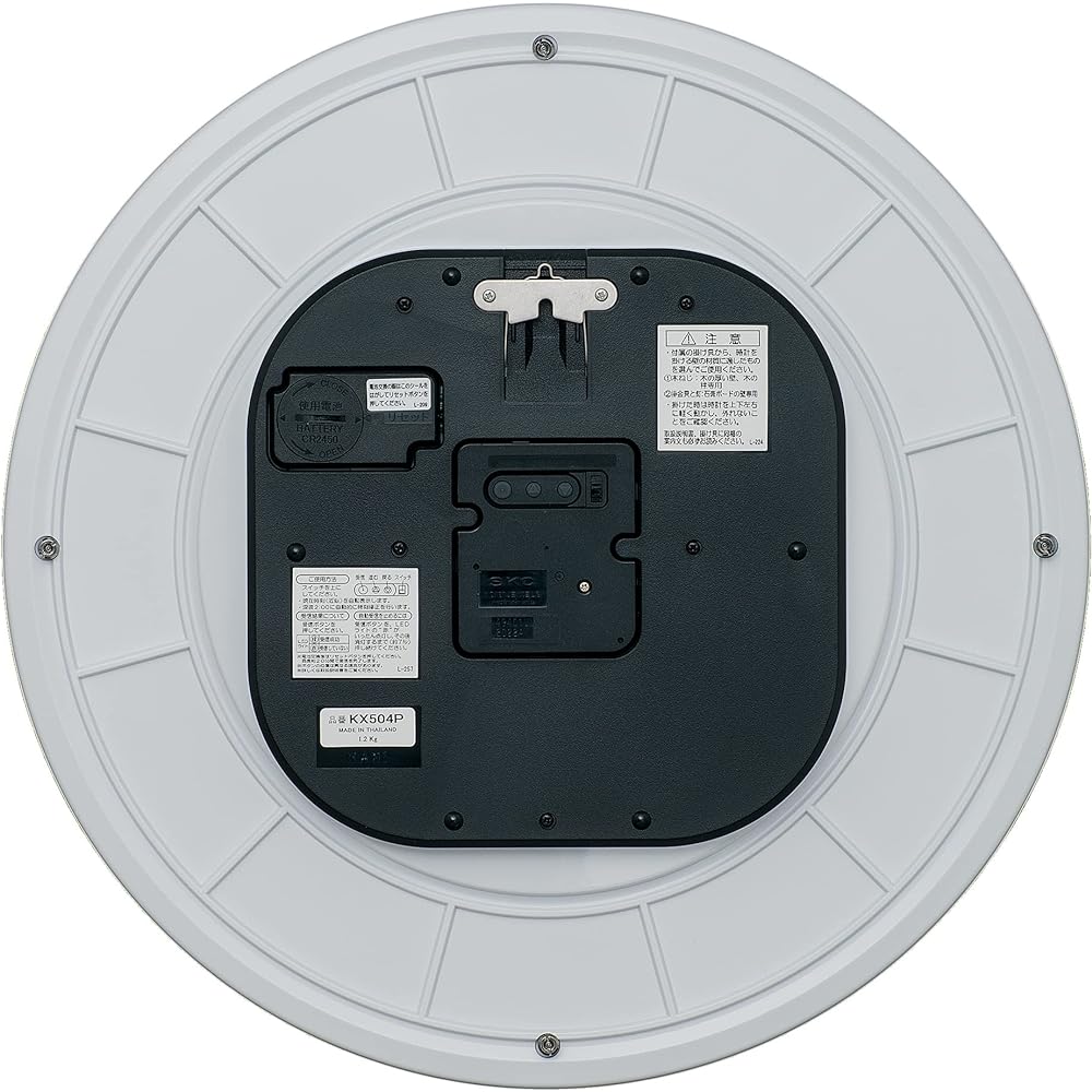Diameter: 35.1 x 3.0cm Material: Plastic frame (white pearl coating, glossy finish), Front: Spherical glass Country of origin: Thailand Movement: Radio wave correction function (40kHz/60kHz automatic tuning and reception OFF function included) Accessories :Lithium button battery CR2450 x 1 (battery life approximately 5 years) Quick start function Comes with gypsum board latch