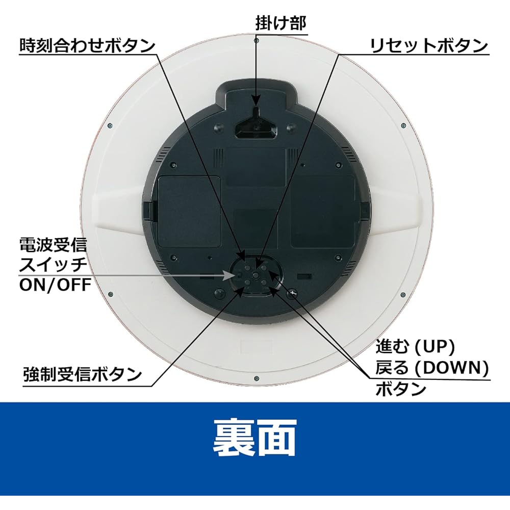 A calendar that is very useful in the office and at home, and a radio clock with temperature and humidity display ◆Standard radio clock A clock that receives radio waves with accurate time information and automatically adjusts the displayed time. When using the product, place it near a window where it is likely to receive radio waves, and avoid places where radio noise is generated. ●When not receiving radio waves, it operates with quartz precision. ●Please also note that it may not be possible to receive messages accurately in the following locations.・Inside buildings, in the valleys of buildings, and underground.・Near high-voltage lines, TV towers, and overhead train lines.・Near home appliances and office equipment such as televisions, refrigerators, air conditioners, air purifiers, computers, and fax machines. - Locations where radio interference occurs, such as construction sites, near airports, or areas with heavy traffic.・Inside the vehicle. (Cars, trains, airplanes, etc.) - Near other objects that generate radio noise. - On or near metal furniture such as steel desks. *Depending on the conditions, it may be possible to receive the service even in areas other than the areas where the service is available. ◆Battery run-down notice You will be notified when the battery runs out. There are two types: one in which the second hand stops at the 12 o'clock position, and one in which a low battery mark is displayed on the digital LCD screen. ◆ Good Night Second Hand The light sensor automatically stops the second hand at the 12 o'clock position when darkness falls below a certain level.Benefits include improved reception sensitivity and longer battery life as there is no noise when receiving radio waves.