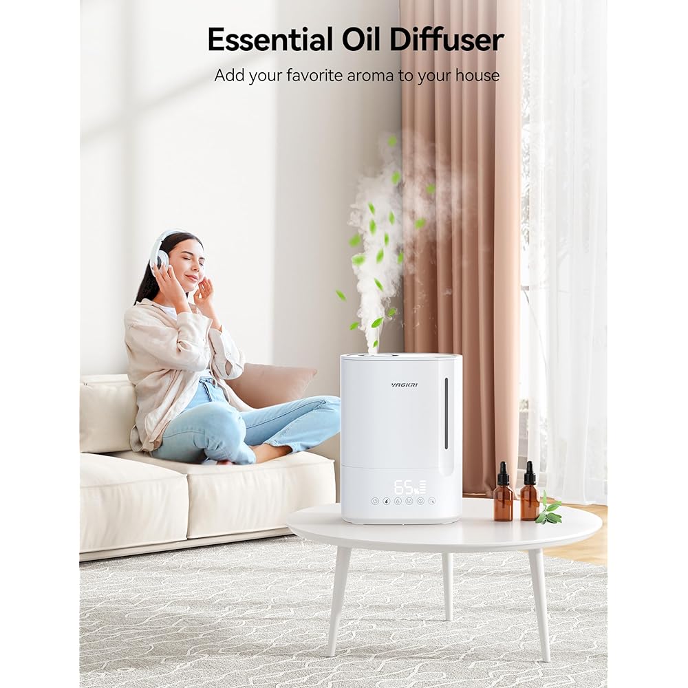 [5L Large Capacity & Discharge Bacteria & 28dB Ultra Quiet] Humidifier, Ultrasonic Type, VAGKRI Humidifier, Tabletop, Water Supply from Above, 50H Continuous Operation, LED Light, Timer, Aroma, Dry Prevention, Dry Burning Prevention, 30W Energy Saving