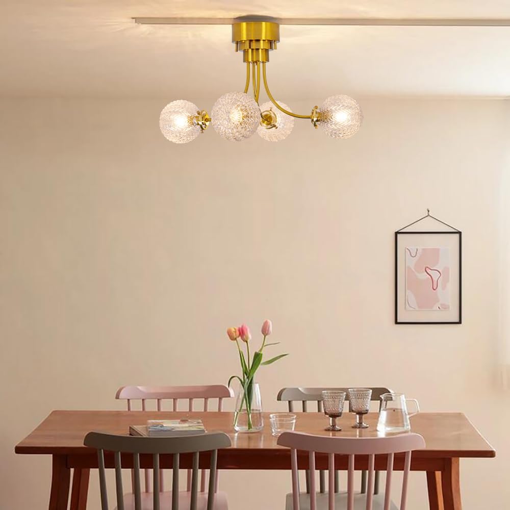 Ceiling Light Stylish 4 Lights LED Scandinavian Brass Glass Living Dining Bedroom Cafe Retro Antique Lighting Fixture Ceiling Light 8 Tatami 10 Tatami E12 Pendant Light Clear CEI-006-JP