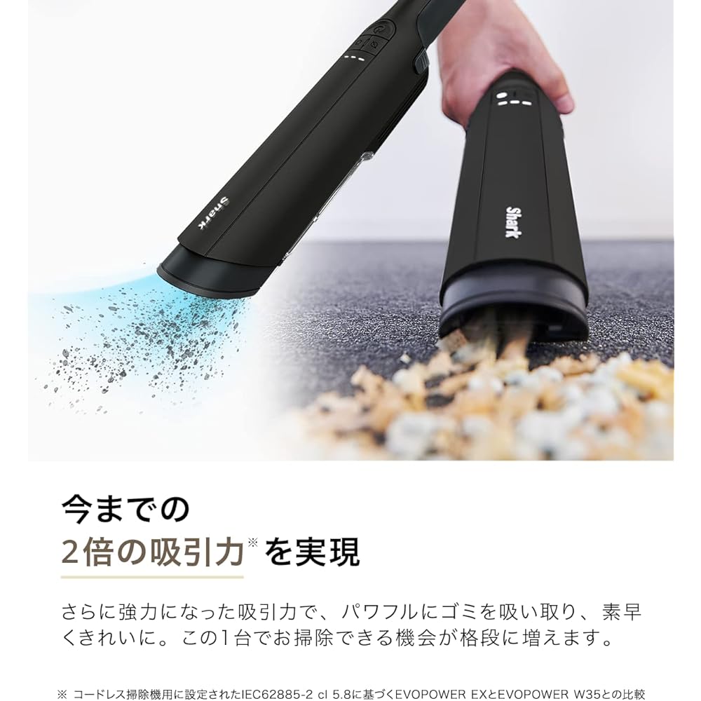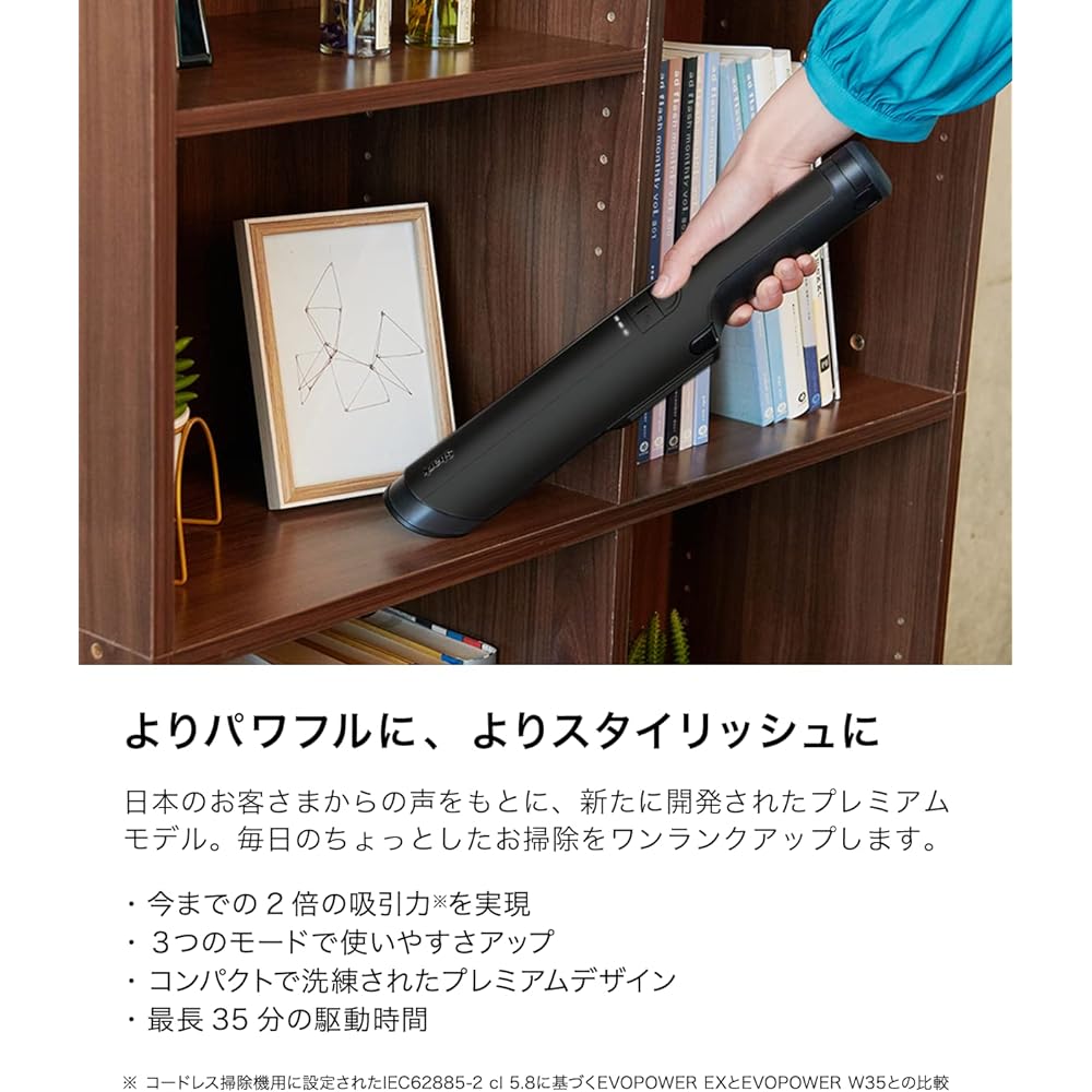 Improved ease of use with 3 modes: In addition to the standard mode, it has a boost mode and an eco mode. When you want more suction power or when you are in a hurry, use boost mode, and when you are concerned about noise, such as at night, use eco mode. You can use it differently depending on the scene, expanding the range of uses. Compact and sophisticated premium design: Designed to blend in with Japanese living spaces, the matte texture shines in carefully selected colors and light. It's compact and doesn't take up much space, so you can place it anywhere and use it anytime. Up to 35 minutes of run time: The longest run time of any major cordless handy cleaner*. You can clean until you are satisfied without worrying about running out of battery. *Test results in eco mode for a handy cleaner without accessories (as of May 2021) Clean futons with the mini motor head*: The powerful motor adheres to various surfaces and removes dirt and hair with high speed rotation. Masu. Ideal for cleaning futons and mattresses, as well as long pile rugs and fabrics. *Only included with WV405JDC /WV405JBJ /WV406JGG Quickly pick up and use: Simply place the vacuum cleaner on the included dock to easily charge. It's always charged, so you can pick it up and use it right away when you need it. All included accessories can be stored compactly in the dock. It is convenient because you can set it in the main unit immediately when you want to use it, depending on the area you want to clean.