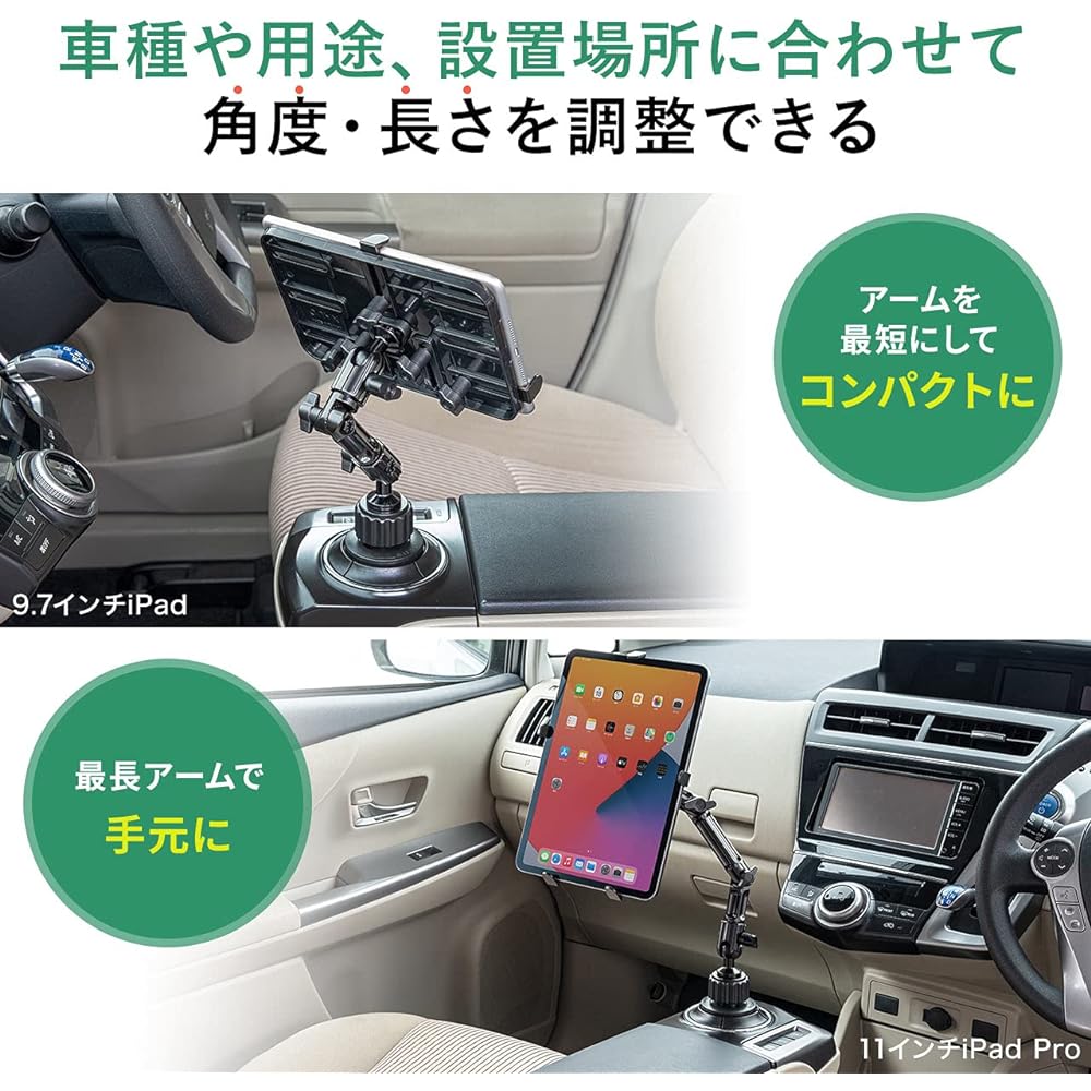 Sanwa Direct iPad Tablet Car Holder Arm Drink Holder Installation Compatible with 7-11 inch iPad Air4 /iPad 8th Generation 200-CAR043