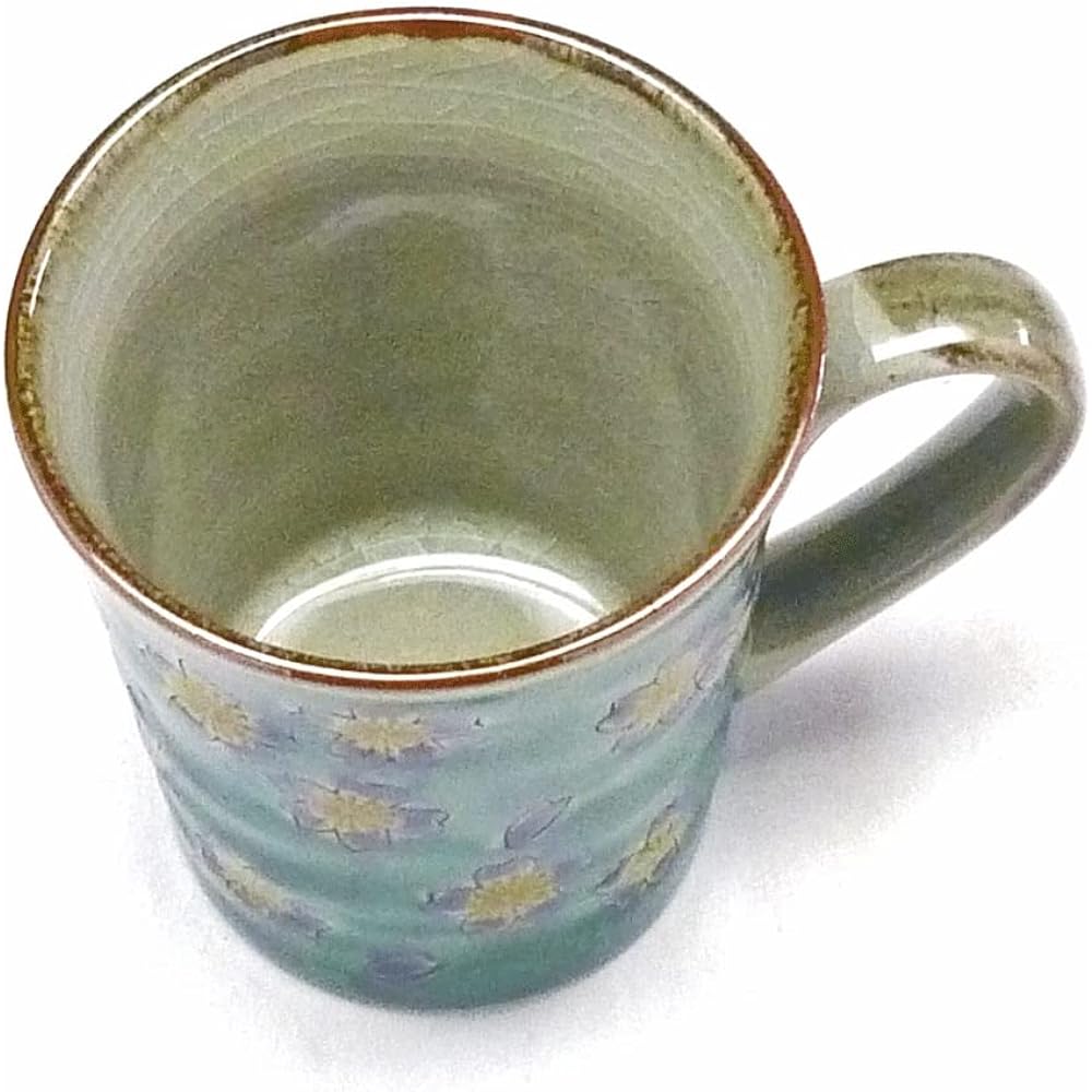A stylish Kutani ware mug. The color green is based on the theme of cuteness, and is carefully painted using the ``Mori'' painting technique to add thickness to the paint from top to bottom. The industry's first Japanese paint has been processed to prevent it from becoming rough. You can use it to prevent scratches on your desk and enjoy the texture you brought with you. A heart is hidden inside the pattern. Comes with a [back picture] that allows you to enjoy the cherry blossom pattern until it dries inside out. For your TeaTime partner, you can enjoy the colors while draining the water. The back picture was created with the hope that it can be used for a long time by being drained after use. Product size, etc.: Diameter 8.1 x Height 9.1cm Capacity 190ml Weight around 210g Packing form: Black paper box