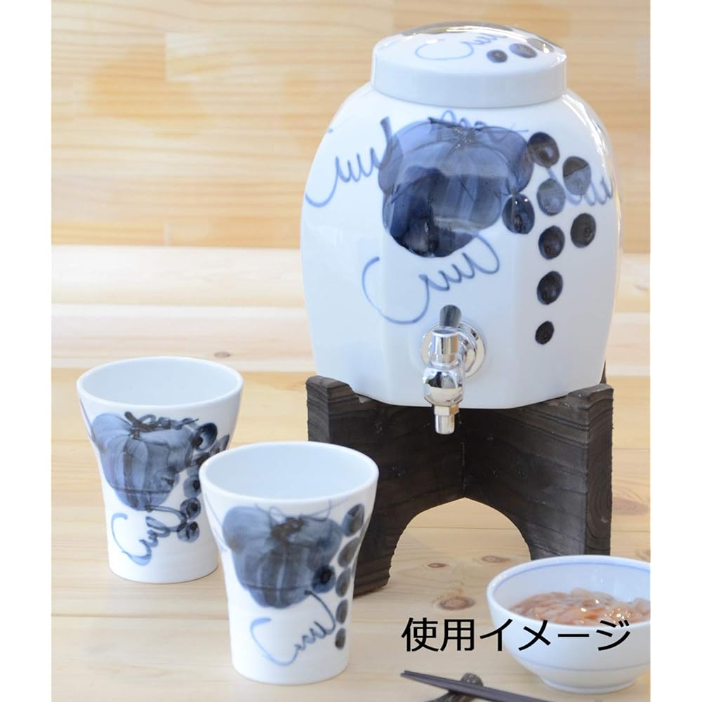 Size: Shochu server - approx. width 15 x depth 22 (including cock) x height 18 cm, stand - approx. width 18.5 x depth 18.5 x height 13 cm Materials: Main body - porcelain, cock part - brass (brass)/silicon, stand - Wooden Country of origin: Japan Capacity: Approximately 2.3L Set contents: Shochu server, stand