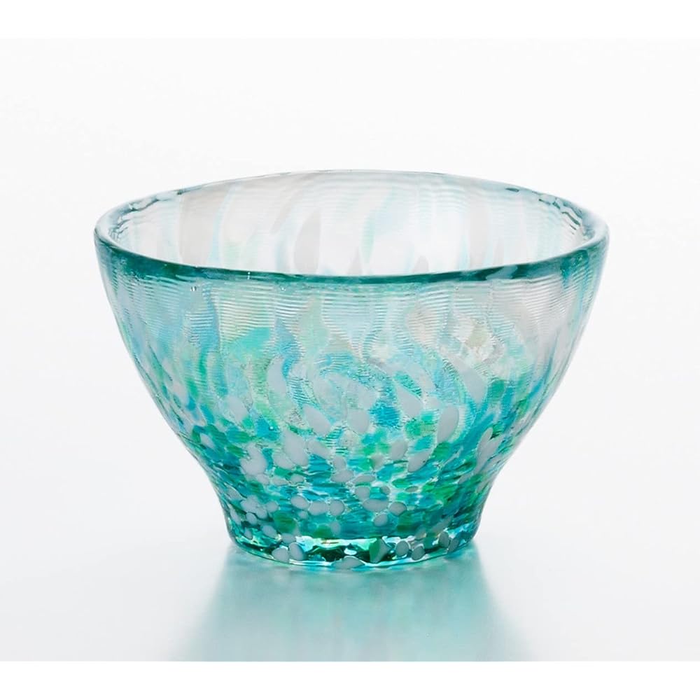 Aomori Prefecture traditional craft "Tsugaru Vidro". A sake set that depicts the growing skunk cabbage in colored glass. The presentation box is a pasted box with silver foil stamped on the top. The sake bottle is sized to hold just under 2 cups in normal use. The sake cup has a slightly wider base. It has a sense of stability. [Size] (Takkuri) approx. max. 9 (caliber 4) x height 12.6 cm, (cup) approx. max. 7.4 (ca. 7.4) x height 4.7 cm [Capacity] (tokkuri) approx. 365 ml, (cup) approx. 85 ml [Materials]・Material] Soda glass [Country of origin] Japan