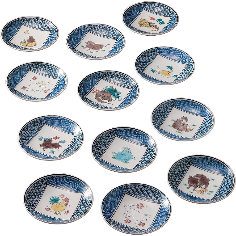 Maruyone Kutani ware 3.5 plates complete zodiac K4-116