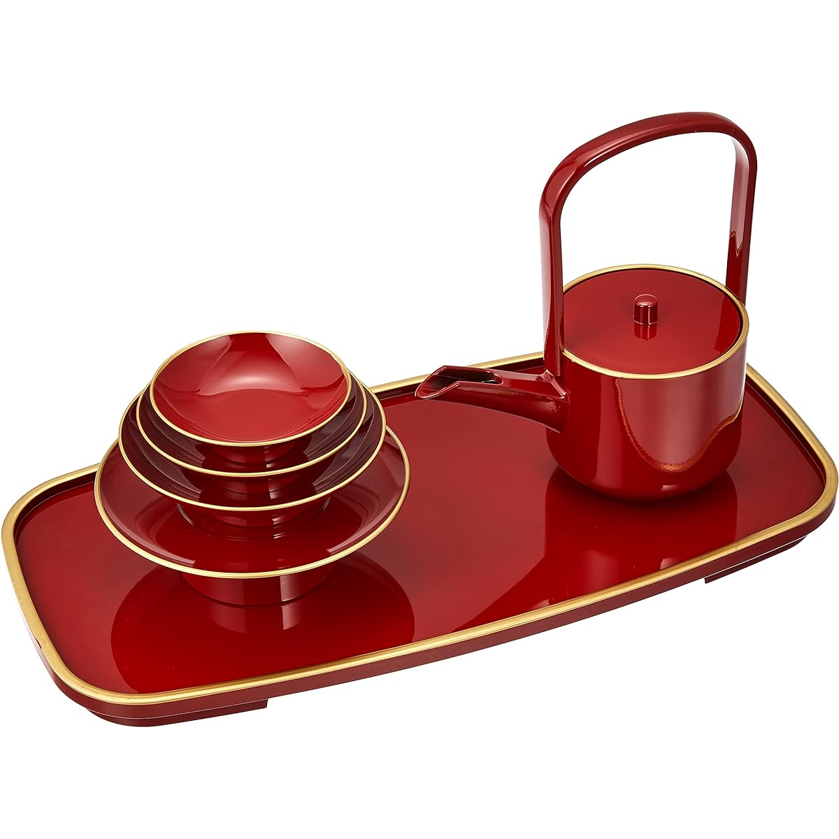 Size: Toso stand - approx. width 34.5 x depth 17.3 x height 2 cm, Choshi - approx. width 15.5 x depth 8.5 x height 16.5 cm, Sake stand - approx. diameter 12.5 x height 4 cm, Sake (large) - approx. Diameter 10.8 x height 3.5cm, Sake (medium) - approx. diameter 9 x height 3cm, Sake (small) - approx. diameter 7.5 x height 2.5cm Weight (kg): 0.521 Material: ABS resin Country of origin: Japan Set Contents: Toso stand x 1, Choshi x 1, Sake stand x 1, Sake cup (large) x 1, Sake cup (medium) x 1, Sake cup (small) x 1
