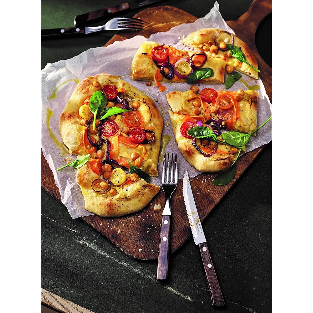 Tramontina Polywood Heavy Duty Natural Wood Handle Steak Knife 21cm & Table Fork 19cm Set of 8 Dishwasher Safe 3 Degree Heat Treated Knives Dark Brown Boxed Dishwasher Safe Shockproof Lightweight Made in Brazil 29899/296 TRAMONTINA