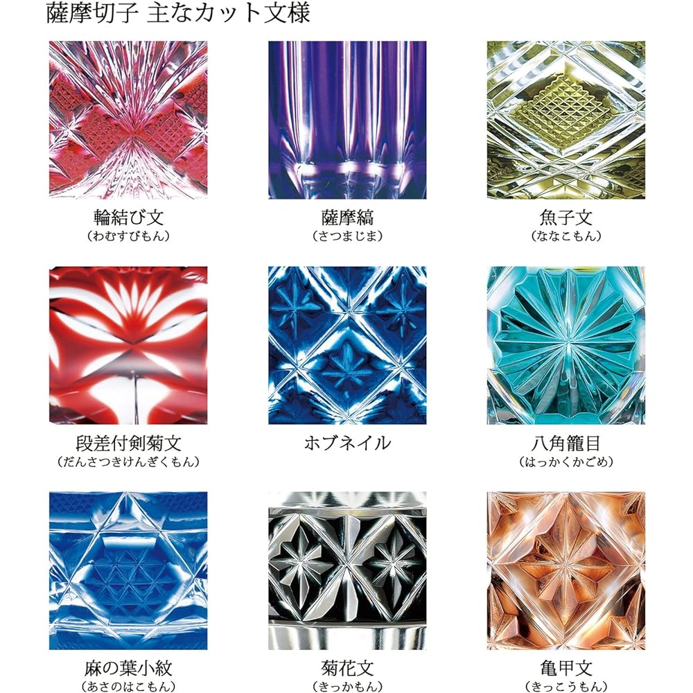 Satsuma Kiriko is a type of cut glass made in the Satsuma domain at the end of the Edo period. Using crystal glass containing 24 to 25% lead, colored glass is welded to a depth of 1 to 2 mm onto the surface of the colorless glass. The product made by cutting and polishing the colored glass is called "Satsuma Kiriko". Satsuma Kiriko is made of thick colored glass, but the color is pale, so it is characterized by the gradation "blur" that occurs between the clear glass and the colored glass. Regarding handling of Satsuma Kiriko - Satsuma Kiriko is not heat-resistant glass. Please be careful not to pour boiling water into it as it will break.・Crystal glass is a soft glass. Do not touch glass to glass.・Soak in warm water with dish detergent and wash carefully with a sponge or cloth. Clean the cut surface from time to time with a soft brush. -The glass blowing, cutting, and polishing are all done by hand by craftsmen, so the weight and thickness of each piece will vary.・In rare cases, there may be bubbles or other contaminants in the glass, but this does not pose a quality problem.・Do not use in a dishwasher or microwave. The color of the actual product may differ slightly depending on your monitor environment. note that.