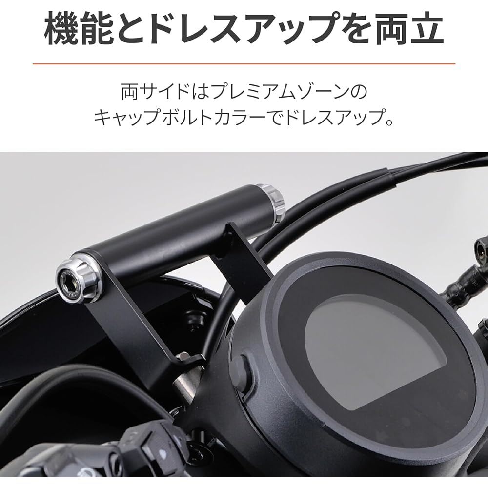 A multi-bar holder for Rebel that is convenient for attaching electronic devices such as smartphones and USB power supplies. You can place your smartphone above the meter, which is convenient and reduces the need to shift your line of sight. If you attach the separately sold Smartphone Holder 3/Plus horizontally, your smartphone will fit neatly in front of the genuine meter. The main body of the multi-bar holder is split, so it is also compatible with accessories that pass through the bar. PREMIUM ZONE cap bolt collars are used on both sides to achieve both functionality and looks. If you purchase cap bolt color M8 separately, you can customize it to your favorite color. [Compatible models] Rebel 250 (17-23) [2BK-MC49 / 8BK-MC49] Rebel 500 (17-23) [2BL-PC60 / 8BL-PC60] * Estimated loading weight: 0.6 kg * When our screen kit is installed Depending on the adjustment position of the screen, it may not be possible to install them at the same time. Please use the screen in the highest position.