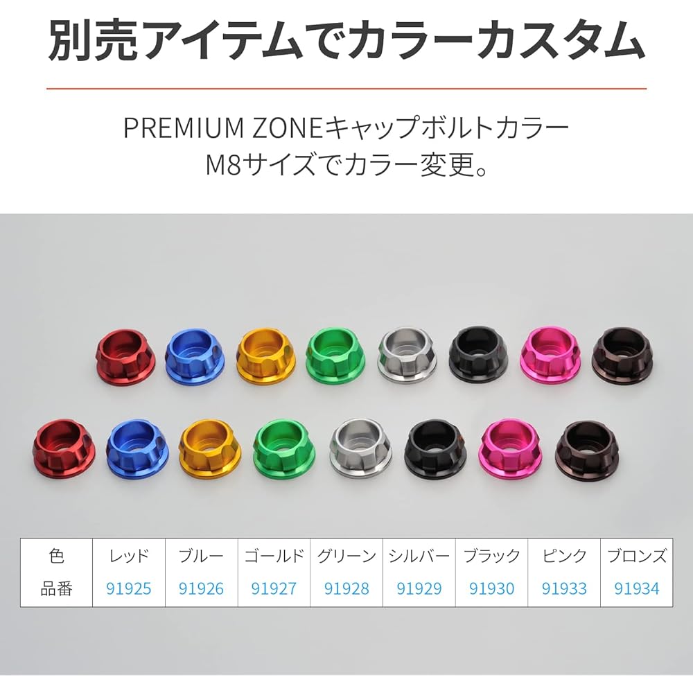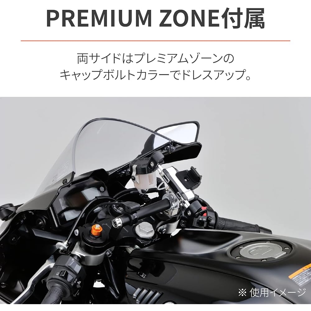 Bar holder specifically for your vehicle. Also compatible with split type clamps. Bar effective length 155mm. PREMIUM ZONE cap bolt collar M8 is included on both sides for both functionality and dress-up. Original combinations are possible by purchasing cap bolt color M8 separately.