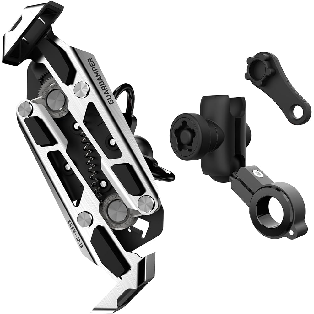 GUARDAMPER GR-23 Silver Blade Anti-Vibration Bike Smartphone Mount for Motorcycles Protective Smartphone Holder (Security Set + Clamp)