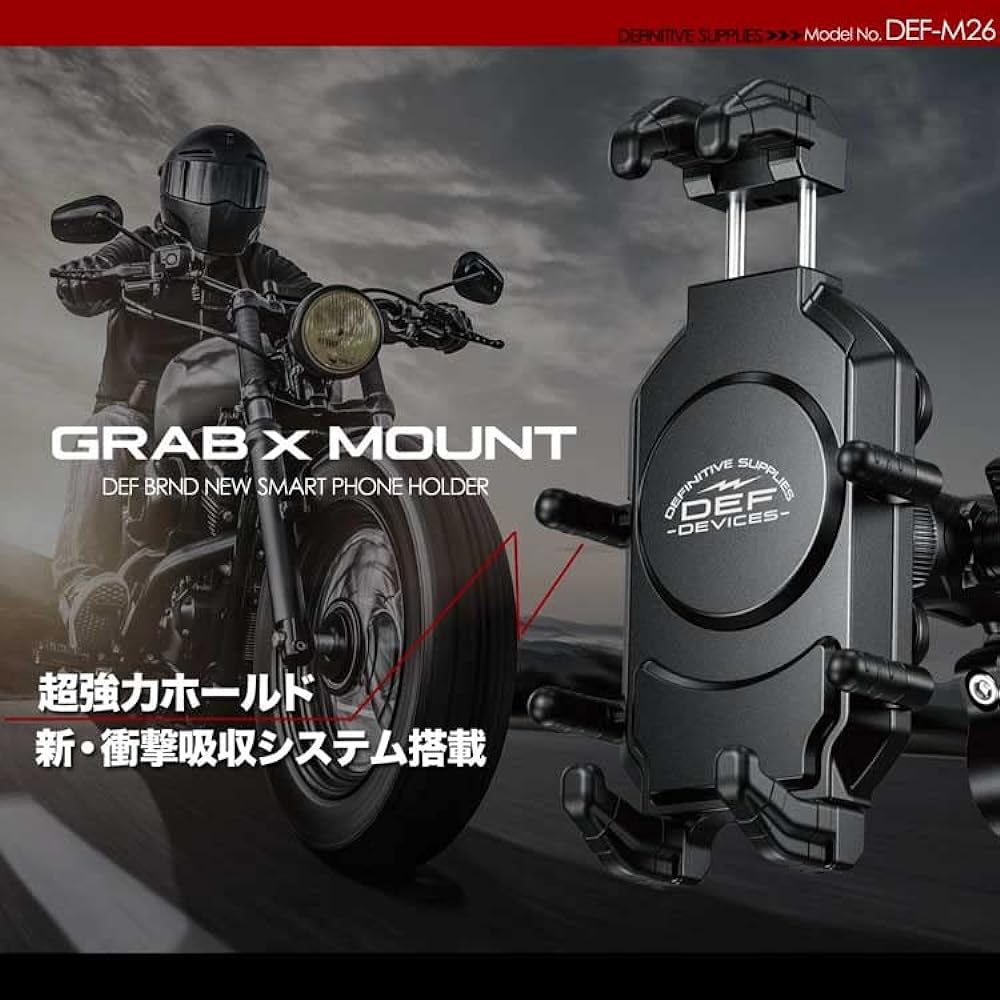 Equipped with new generation X anti-vibration! A smartphone holder is now an essential item for motorcycles. The long-awaited new product from the RIDEZ brand DEF is now available and is equipped with anti-vibration function using X anti-vibration. New X Anti-Vibration DEF is constantly evolving. Finally, innovative, to the next stage. The shock absorption system is placed at four points on all sides, and it is equipped with an X anti-vibration function that absorbs vibrations from all angles. In order to efficiently absorb vibrations, they are placed in four locations to absorb, break down, and release vibrations over a wider range. If you are having trouble viewing the screen due to slight vibrations from the engine, please try the vibration-resistant model. Grab mount - The strongest holding power in DEF history. DEF-M26 locks your smartphone from any shaking and won't let go. Securely fixed with 8-point clamp arm. Each arm can be adjusted in size with a screwdriver. Even if the case is hot, rectangular, or wide, you can adjust the size just right. By being able to adjust the size to suit you, we have achieved the strongest holding power. Slide lock DEF-M26 uses an upper slide. Slide the top arm to lock your smartphone. There is a dial lock on the back to prevent your smartphone from falling. 360 degree rotation! Adjustable angle: Adopts a ball joint, so you can adjust it to your desired angle when riding. It is useful when you are on long distance rides such as touring because you can change the position. Model No: DEF-M26 JAN CODE: 4527625121379