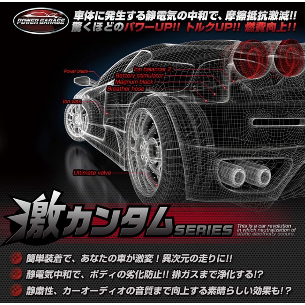 A body-attached electronic generator with a strong magnet and a battery-mounted electronic generator neutralize the static electricity that is constantly generated while driving, providing a comfortable ride. It can be easily installed by simply attaching the main body with a strong magnet to the rear of the body. You can use it semi-permanently even if you change your car. Comes with ion grease to apply to +- battery terminals and air valve. made in Japan