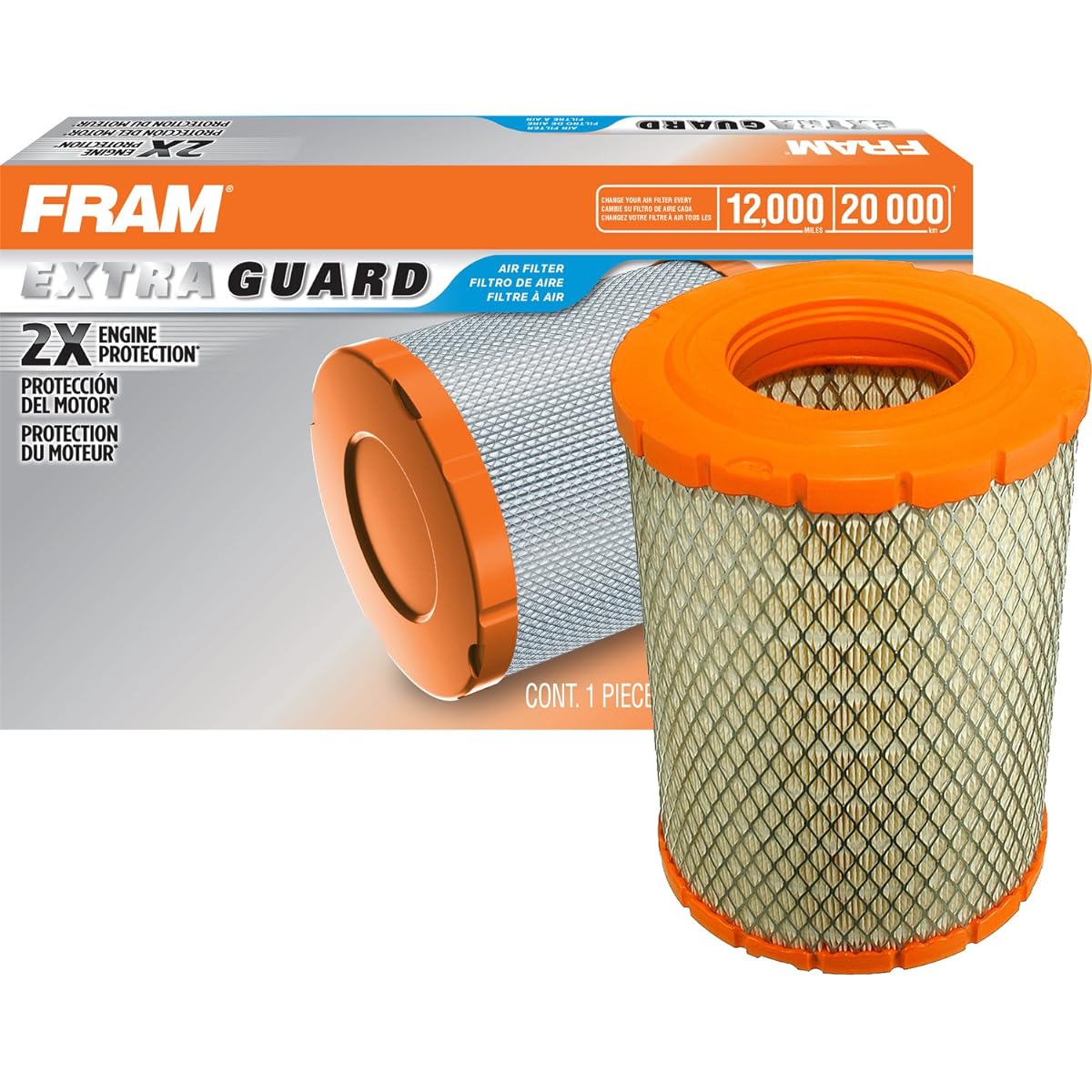Increases airflow for improved performance. Highly efficient blend of round fibers and synthetic fibers. Traps more dirt without reducing airflow. Traps dirt within tiny microscopic channels, trapping more dirt without increasing subsequent airflow restrictions. Fram is continually changing its packaging to reflect the new name "Extra Guard". Regardless of whether the box you receive shows the "Extra Guard" name or not, the filter inside will not change.